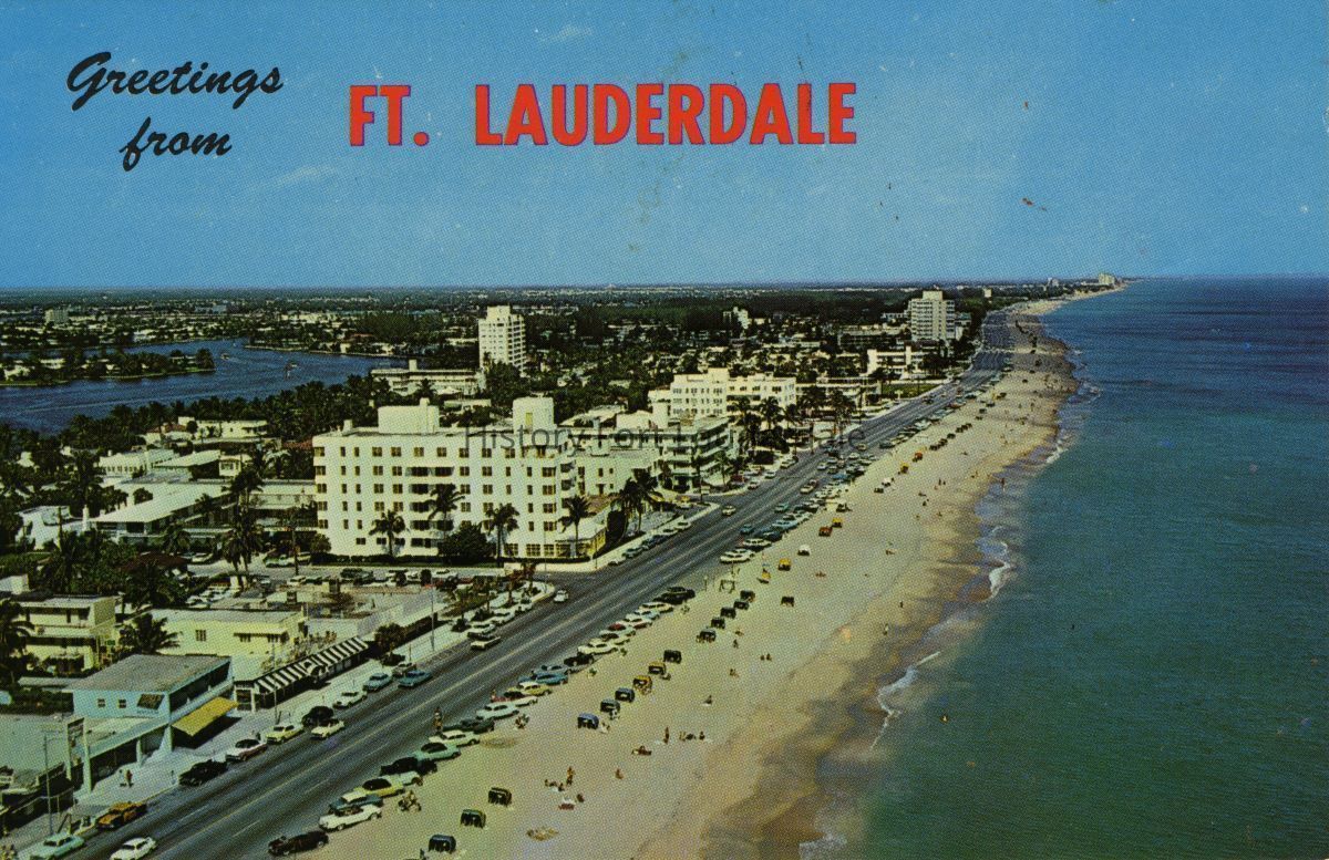 Greeting post card. From Fort Lauderdale, Florida. Airview of Ft. Lauderdale, Fl. the venice of America, showing its wide sandy beaches