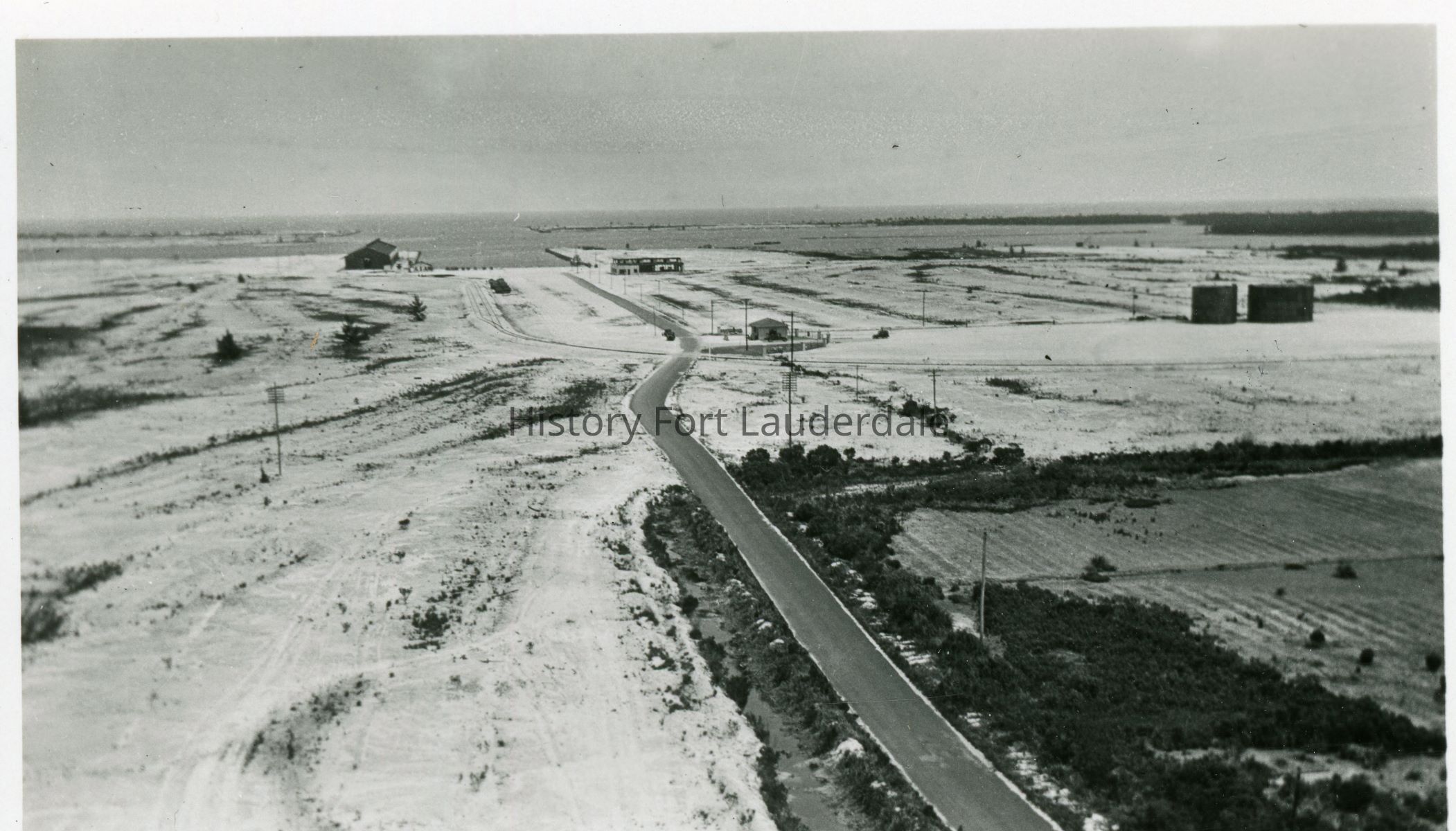 Aerial view of Port Everglades before all construction was complete. Looking east towards the ocean. Oil tanks to the right.Collection