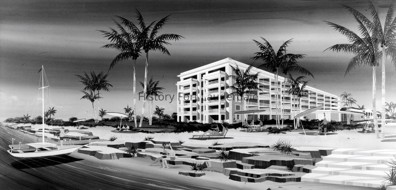 Rendering of Balmoral Club, Nassau designed by Charles McKirahan.Collection
