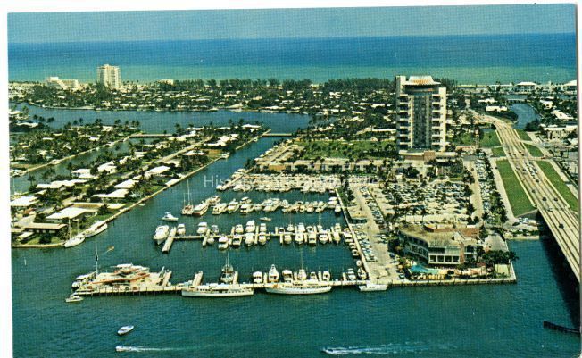 Colored postcard of Pier 66 tower and marina looking east. 17th St Causeway on left.Photograph Details