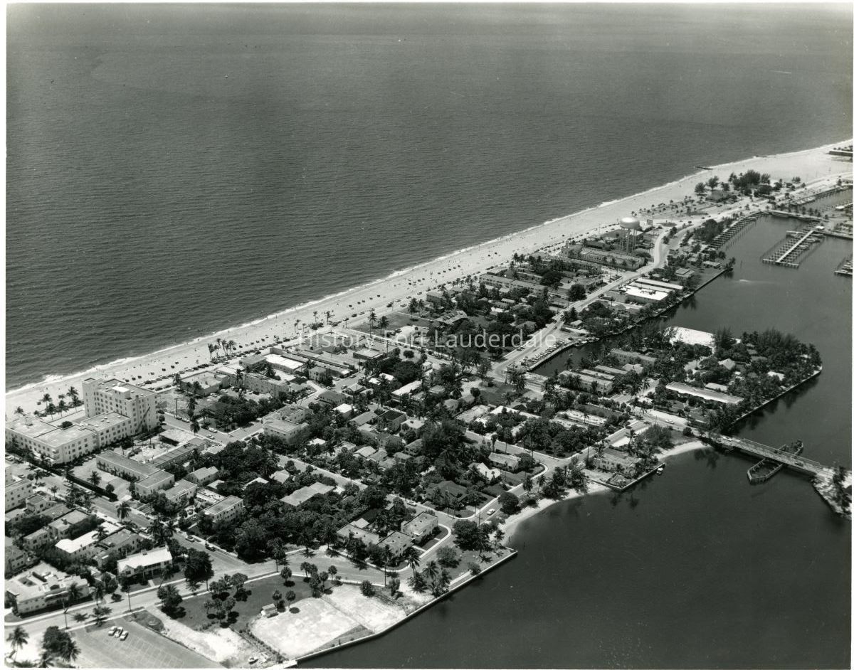 Aerial of Las Olas Beach looking east with Las Olas swing bridge.Collection