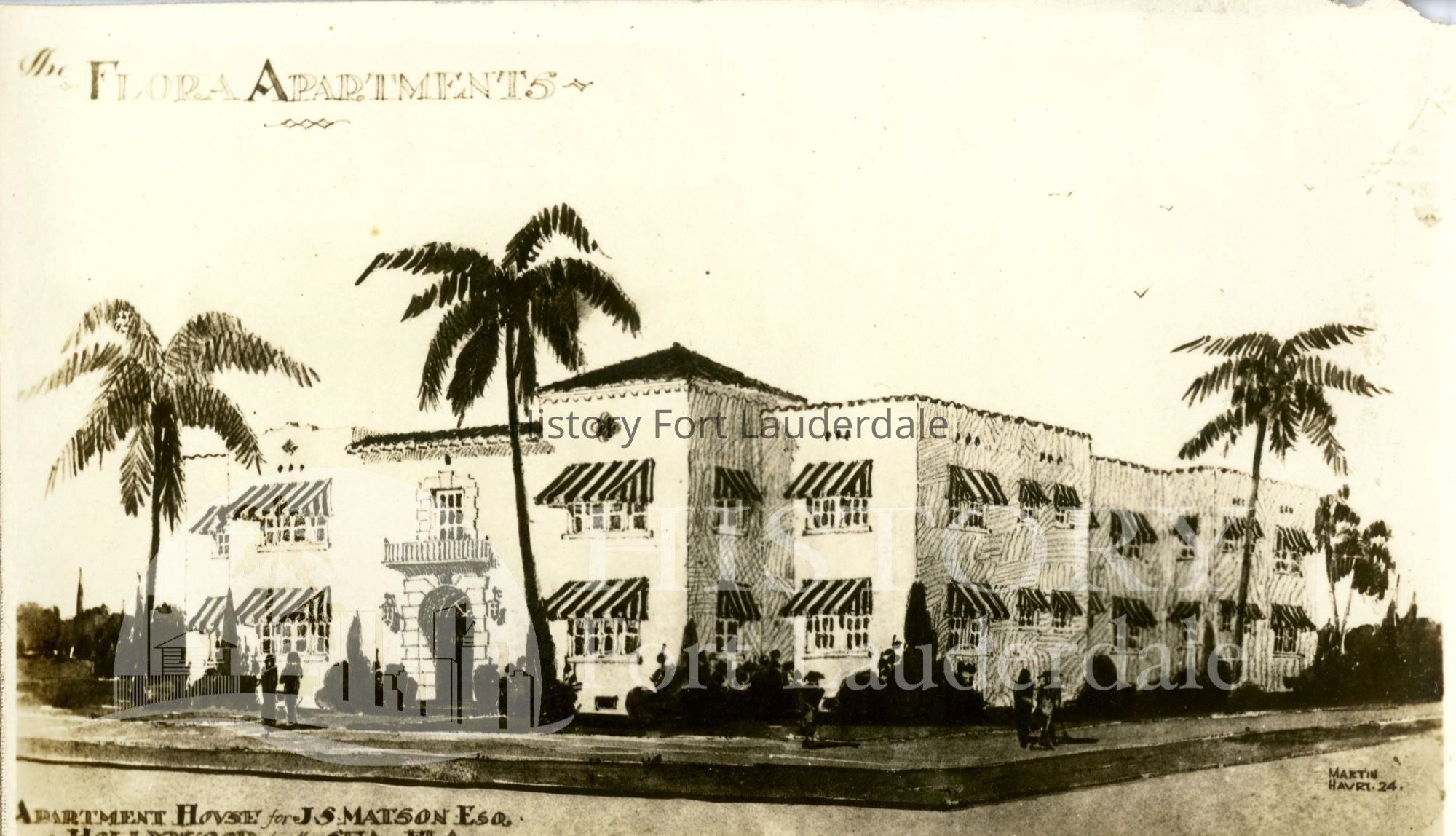 The Florida Apartments, Apartment House for J.S. Matson, Esq., Hollywood-by-the-Sea, Hollywood, Florida. Martin L. Hampton, Architect. 1920's.Collection