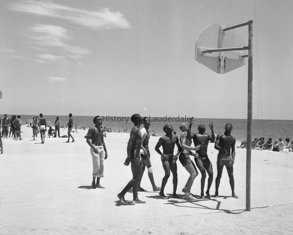 Students playing basketball at Fort Lauderdale beach during the wade-in, 1961Photograph Details