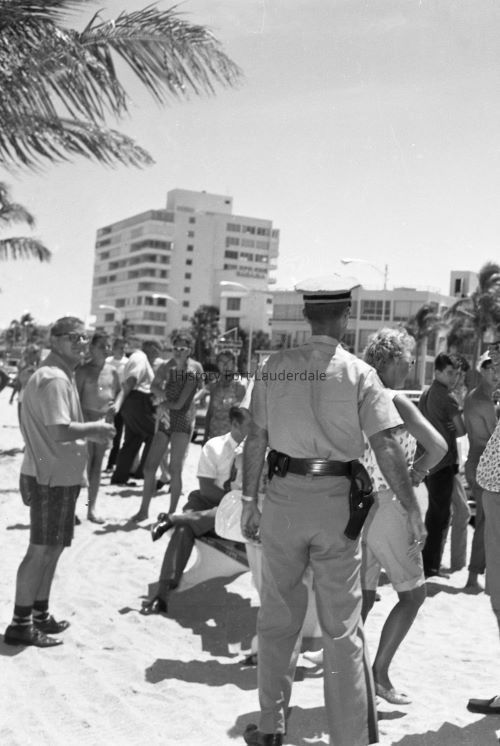 Fort Lauderdale Police and spectators at Wade-In on Fort Lauderdale Beach.