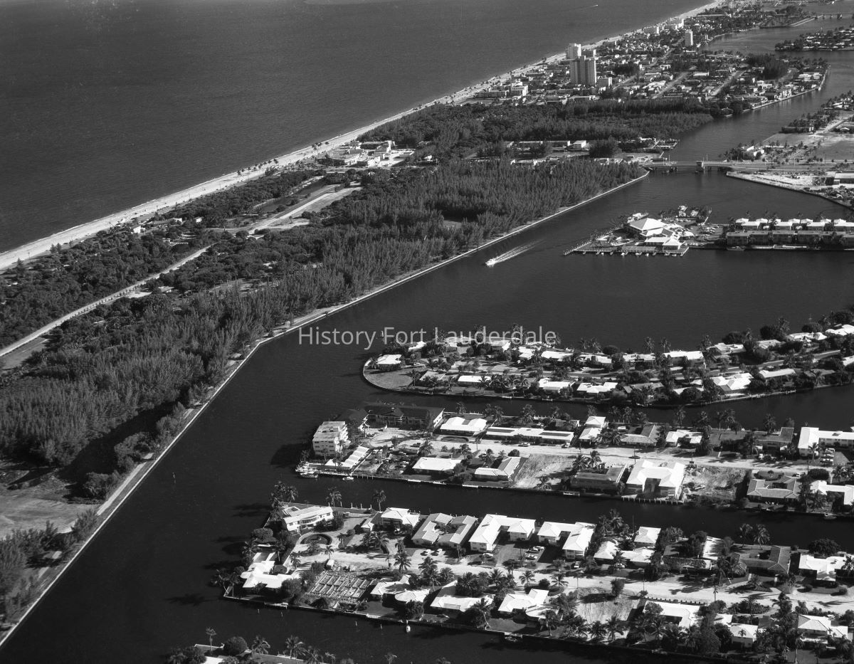 Aerial view of NE 15th St & Intracoastal looking south along Birch State Park in 1961Collection