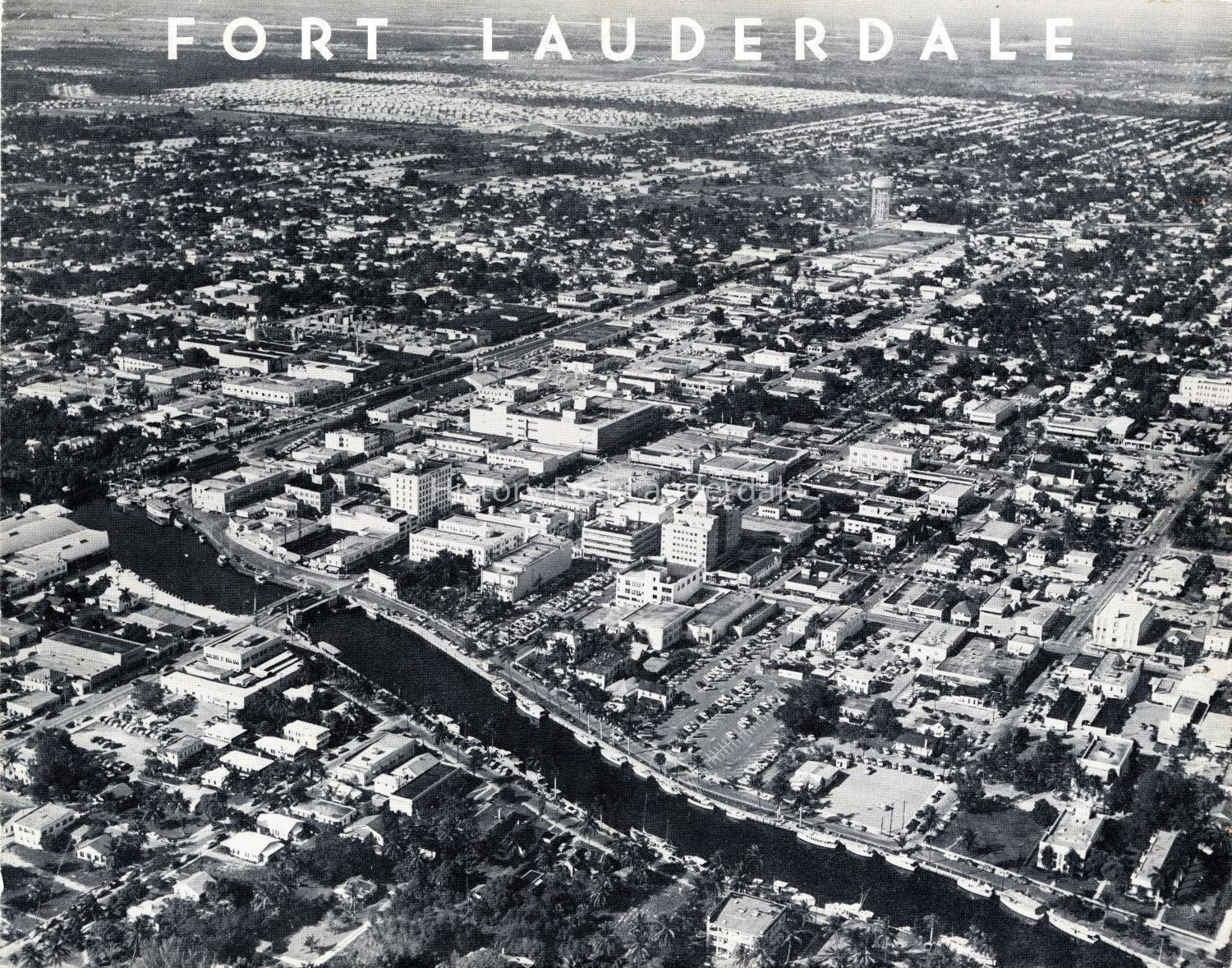 Aerial view of downtown looking northwest from intersection of SE 3rd Avenue and South River Drive. Burdine's building in upper left center.Collection