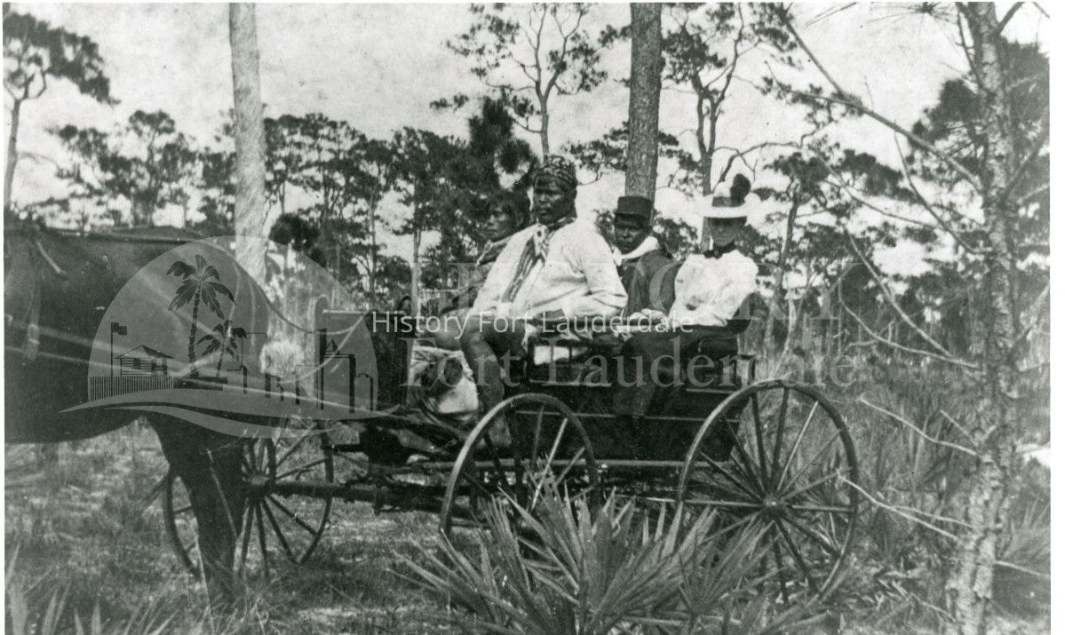 Two Seminole Indian Men with a white woman sitting in a horse-drawn buggy.Collection
