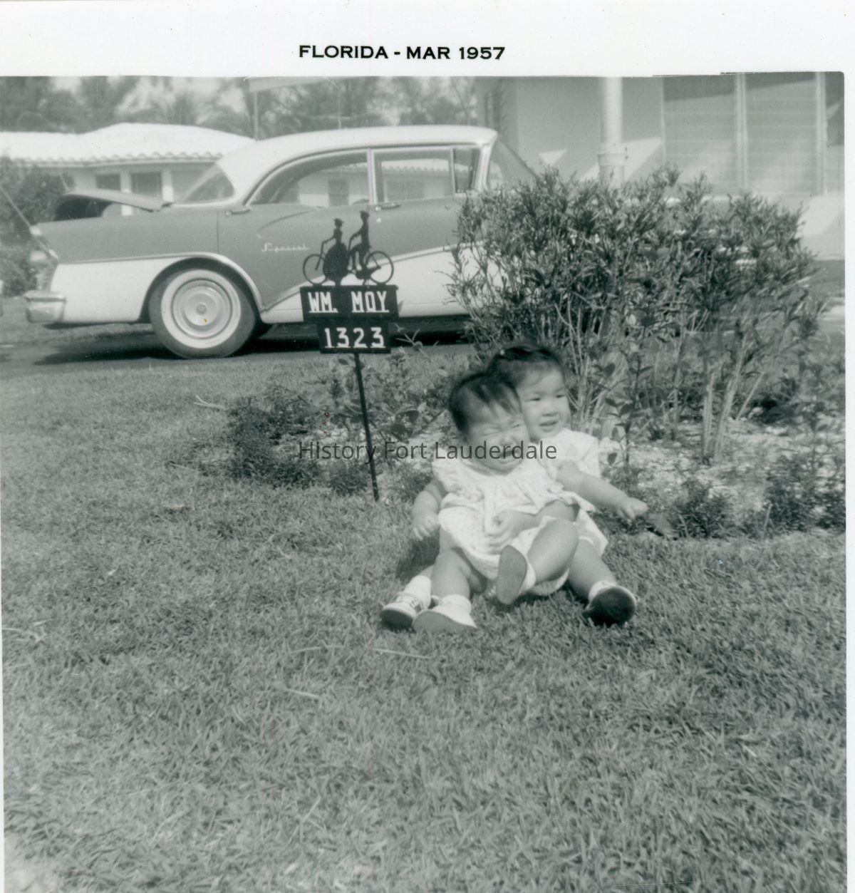Jeanne & Jane Moy on the front lawn at 1323 Pierce St., Hollywood, FL.