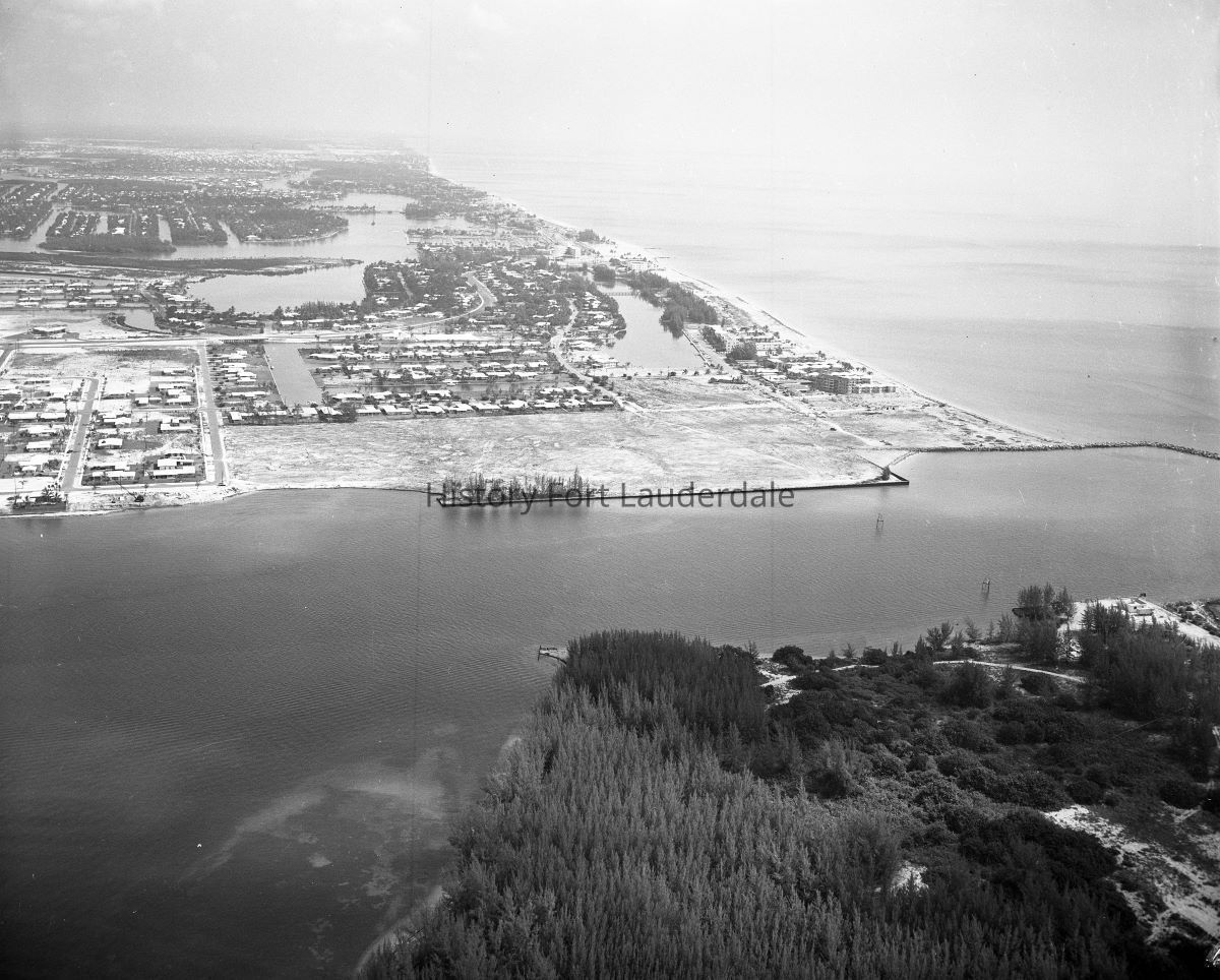 Aerial of Breakwater Surf Club and Port Everglades. Breakwater Surf Club was a development designed by architect Charles McKirahan. Looking north from Port Everglades.Lexicon