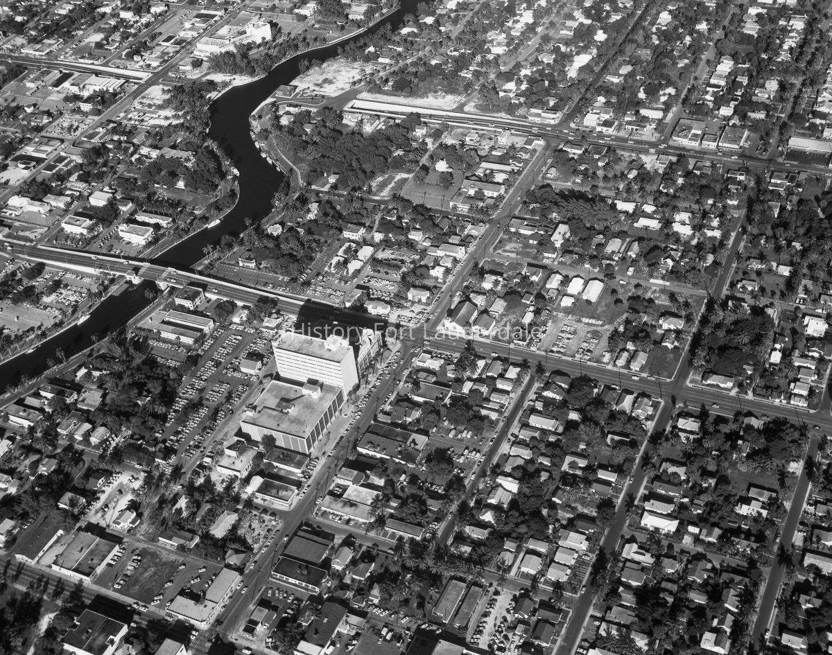 Aerial view of Broward County Courthouse and 3rd Ave., Federal Highway, and New River.Photograph Details