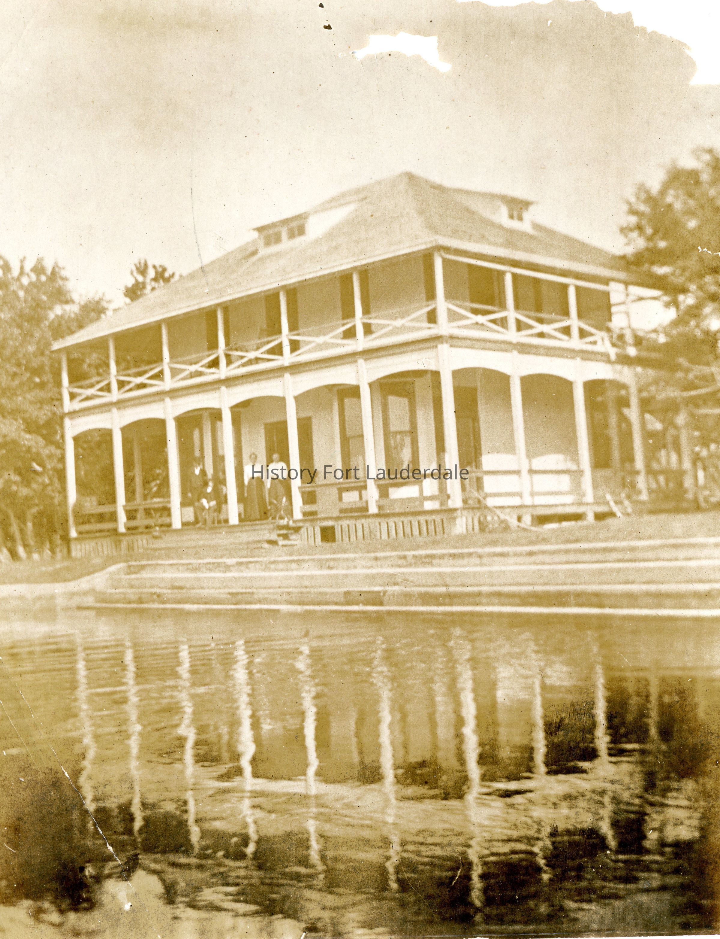 Two story wood frame house. Two men (one standing, one sitting) and two women standing on the porch.Collection