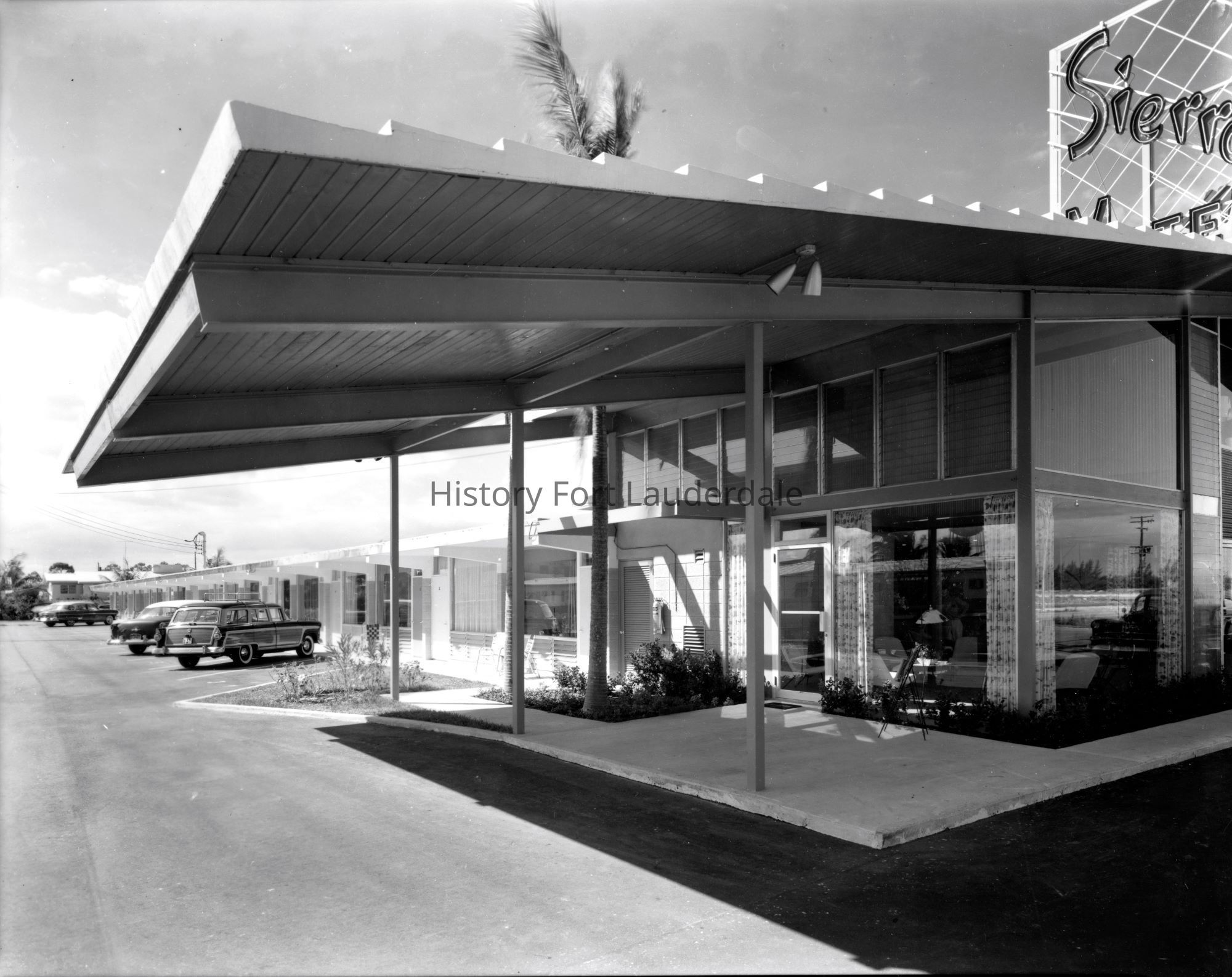 Exterior view of the Sierra Motel designed by Charles McKirahan.Collection