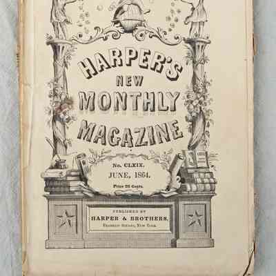 "Harper's New Monthly Magazine," No. CLXIX, June 1864, published by Harper & Brothers, New York. Among the general articles on current affairs, including the Civil War, general features, a serial by Charles Dickens, and others, there is an article "Wine-Making in California" that contains much information on planting and care of vines and the fermentation and distilling of the wine. There are also some illustrations. With edge tears, soiling, creases, a heavily damaged spine and some page browning, the overall condition is fairLexicon