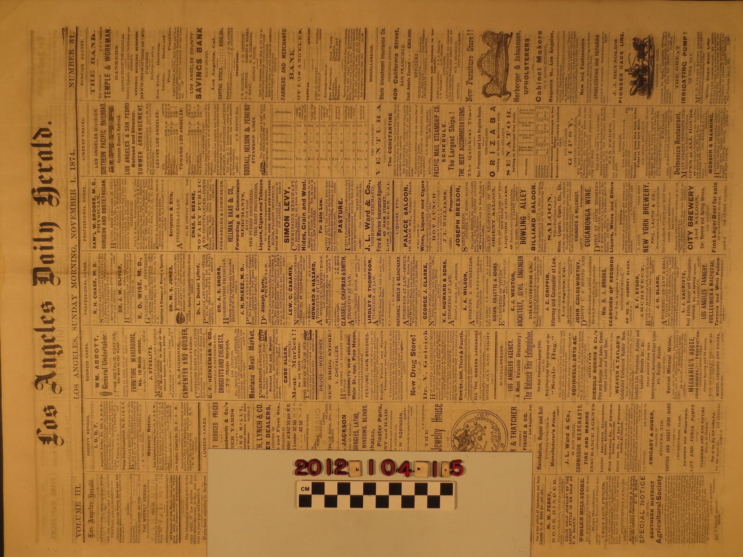 "Los Angeles Daily Herald," 6 November 1874. The condition is good overall.