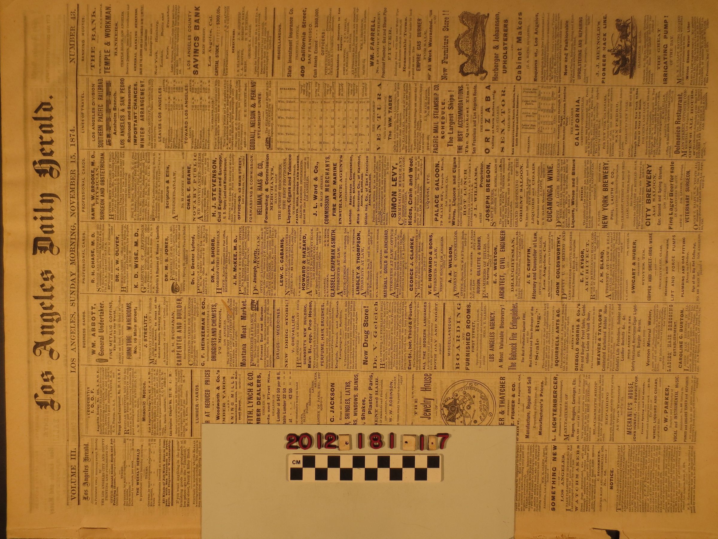 "Los Angeles Daily Herald" 18 November 1874. The overall condition is fair.
