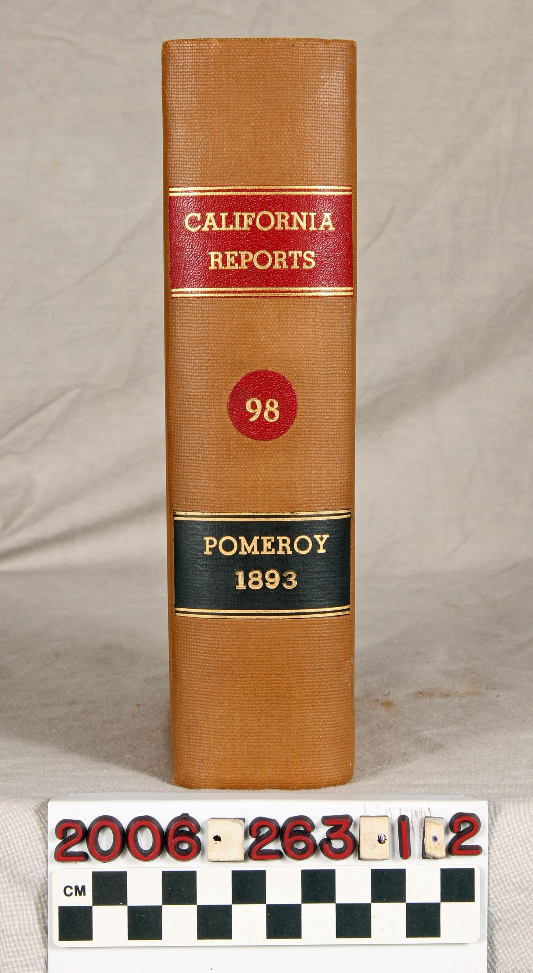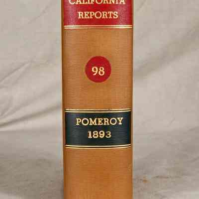 "California Reports," Volume 98, 1893 (San Francisco: Bancroft-Whitney Company,) 1894. The work contains the reported cases, as well as a list of justices and officers, organization of the court and court commissioners, a list of superior court judges, tables of cases reported and not reported, a table of cited cases, a statute of code citations, and an index . The covers have flaking, rubbing, abrasions, scratches, soiling, and a loose spine, while the pages are relatively clean and tight, so the general condition is fair.Lexicon