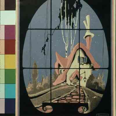 "Color Furniture in the Home," issued by the Heywood-Wakefield Company, 1927. The 31-page booklet has a paper cover with a pink, white, and blue illustration on the center of the front of a cottage surrounded by many trees and other homes in the distance. At the front of the building is a stone walkway and to the left is a picket fence. The title is across the top in pink and white. The name of the manufacturer is on the center of the back in blue and pink. At the beginning of the inside are a title page and an introduction. The artifact includes many sections on furnishing the home with titles like "Overcoming the Small Room," "Planning the Sun Room," "Where to Place Color Furniture," and many more. Also included are diagrams illustrating furniture placement. Many black and white photographs, illustrations, and line-drawings are included. At the end is a note about the company and a list of their products. With some abrasions, creases, and some soiling, the object is in good condition overall.Lexicon