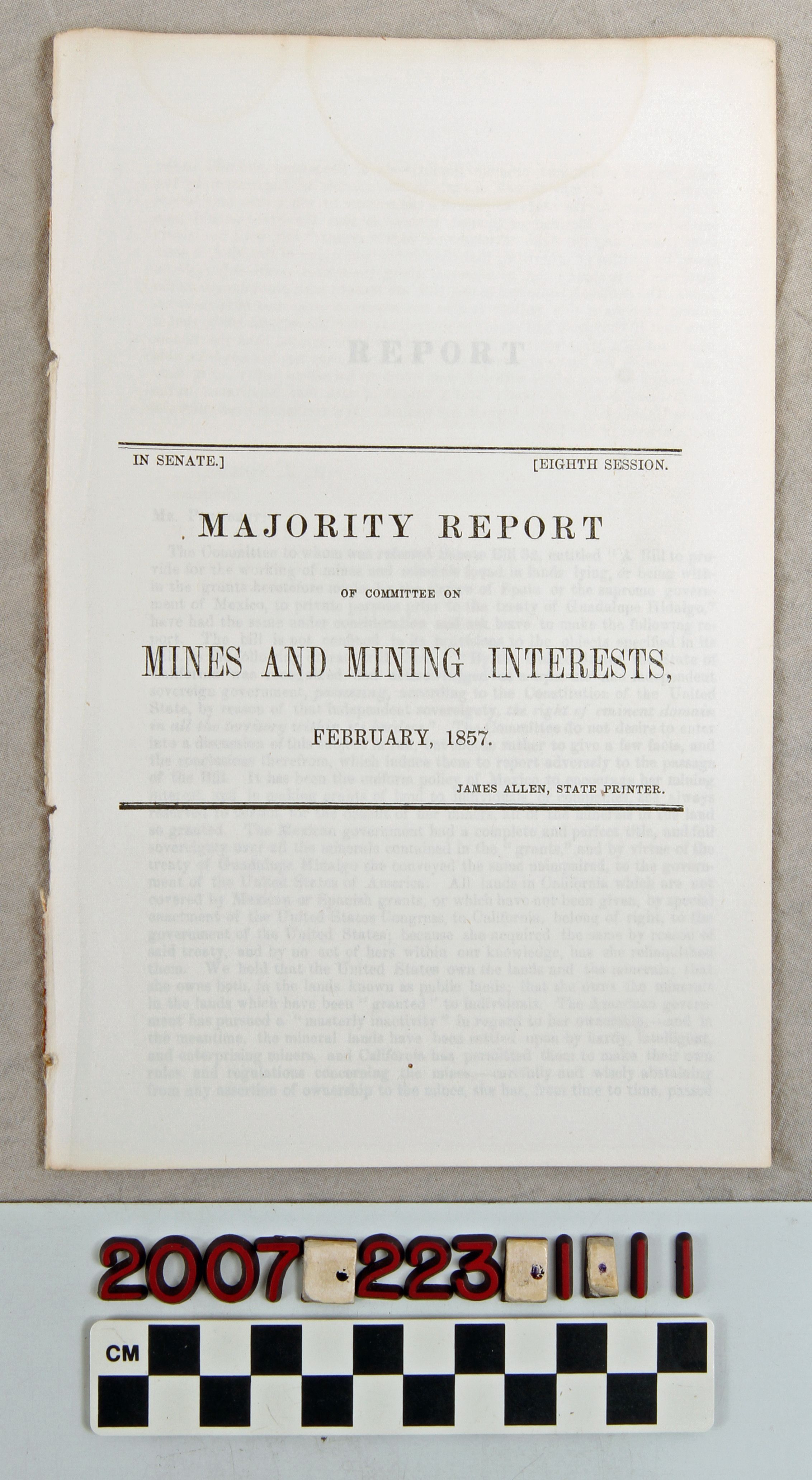"Majority Report of Committee on Mines and Mining Interests, February 1857"Entry/Object ID