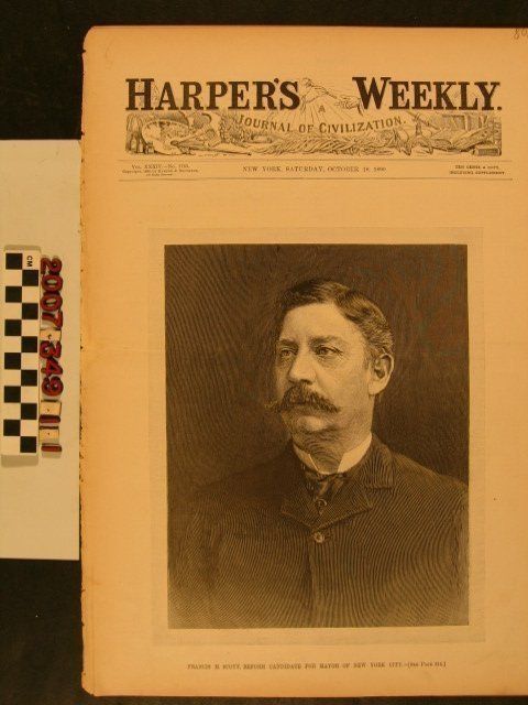 "Harper's Weekly," 18 October 1890 (Vol. XXXIV, No. 1765). The item contains domestic and international news items, fiction and poetry, and other items of general interest. Of note is an article, with illustrations of eleven local scenes by Charles Graham, by Clarence Pullen on Los Angeles. As disbound with pages separated, stains, edge tears, creases, browning, and other wear, the condition is fair.Lexicon