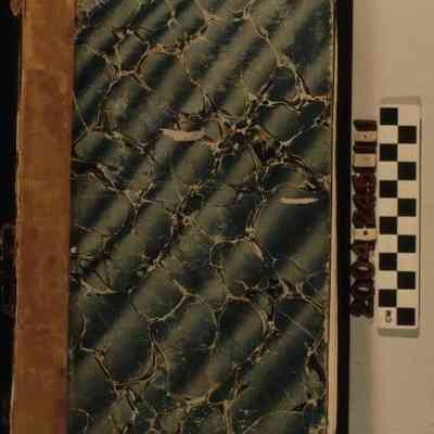 "JOURNALS OF THE LEGISLATURE OF THE STATE OF CALIFORNIA," 2ND SESSION, 1851 Color: Black; Blue; Brown; Gold "Journals of the Legislature of the State of California at Its Second Session," published by Eugene Casserly, State Printer, 1851. The document has blue marbled paper boards with brown leather trim and leather spine with a black label and gold lettering reading "SECOND SESION / 1851." The report is a day-by-day reporting of the activities of the legislature from January 6 to May 1, 1851 including the introduction, deliberation on, and voting on bills, messages to the body, reports of various state bodies, including financial reports. At the back of the 1,860 page document is an index to the proceedings. With the covers detached, rubbing to edges, brittle pages, soiling, discoloration, spine flaking, folds on some pages, foxing, losses to the spine, moisture damage to some pages, and scratches on the covers, the overall condition is fair.