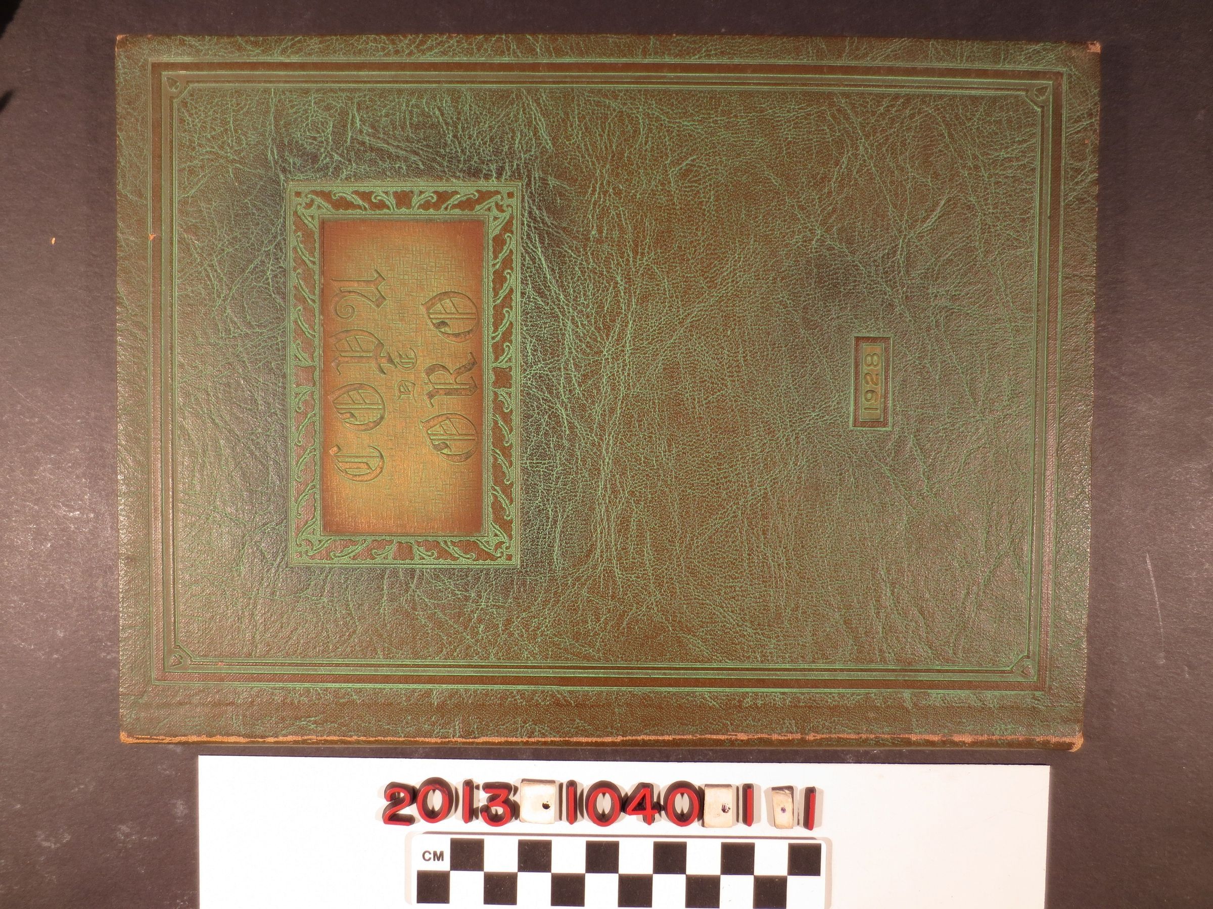 "Copa de Oro," the yearbook of South Pasadena High School, 1928. The inner covers have maps of the area showing local and historic landmarks like Mission San Gabriel, the Adobe Flores, the Old Mill, the Huntington Library, and Cawston's Ostrich Farm among others. Contents include an opening section showing yearbook staff, local landmarks, inlcuding the Raymond Hotel, the Cathedral Oak, Mission San Gabriel and others, and a poem about the Cathedral Oak; a list and photos of faculty members; the several classes in the school; organizations; activities; drama; literature; athletics; and features. There are many autographs from fellow students of owner Hazel Tucker. With soiling and rubbing to the boards and clean pages, the general condition is good.Lexicon