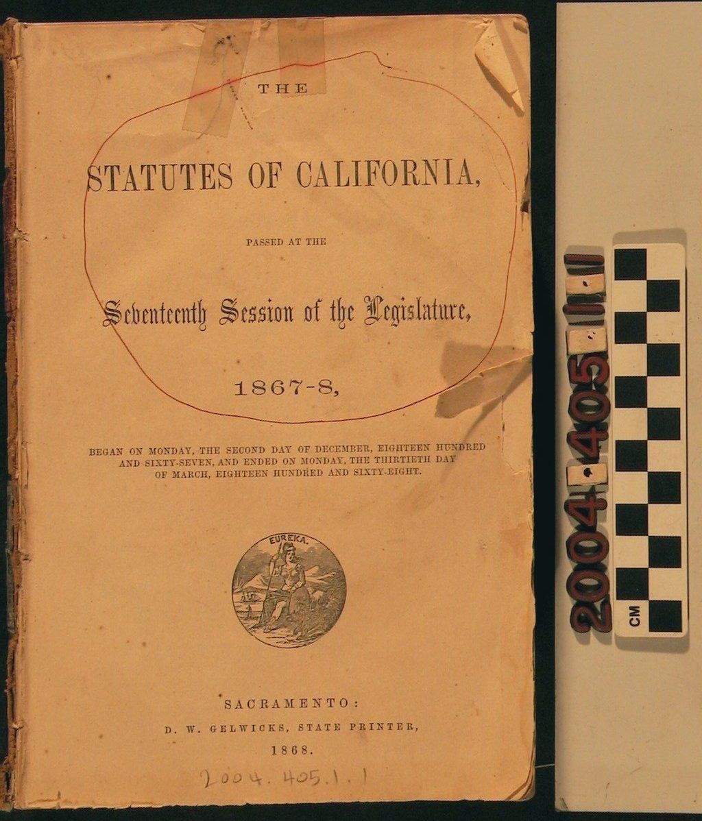 "STATUTES OF CALIFORNIA, 1867-68"Entry/Object ID