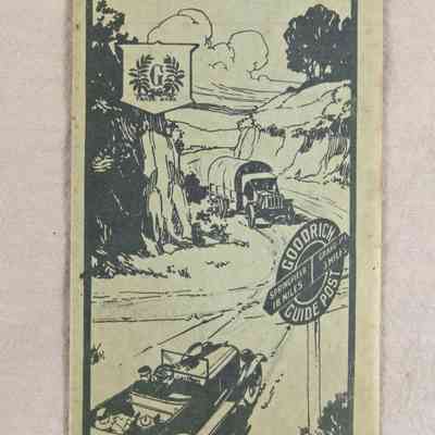 "Goodrich Road Map of Southern California," issued by the Touring Bureau of The B. F. Goodrich Rubber Company, Akron, Ohio, 1919. When unfolded, there is a regional map showing major roads and other roads from Paso Robles and Kernville from the north to San Diego on the south and the Nevada and Arizona borders on the east. There is also a detail of the Los Angeles region heading east to Beaumont and south to Murrieta and Laguna Beach at the lower left. At the bottom are tables of distances to various places from Los Angeles. Other panels features detailed maps of the San Gabriel Valley, Los Angeles, San Diego and the South Bay area; suggested tours of California; material on good roads; other national branches of Goodrich touring bureaus; and company advertisements. There are some stains, small tears folds, light soiling, and folds, but the condition is good.Lexicon