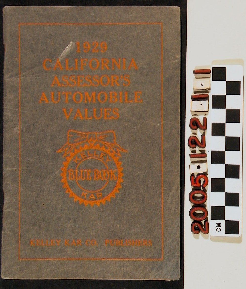 "1929 CALIFORNIA ASSESSOR'S AUTOMOBILE VALUES," Kelley Blue Book, Kelly Kar Co., Publishers, Los Angeles and printed by A. Carlisle & Co., San Francisco, 1929.