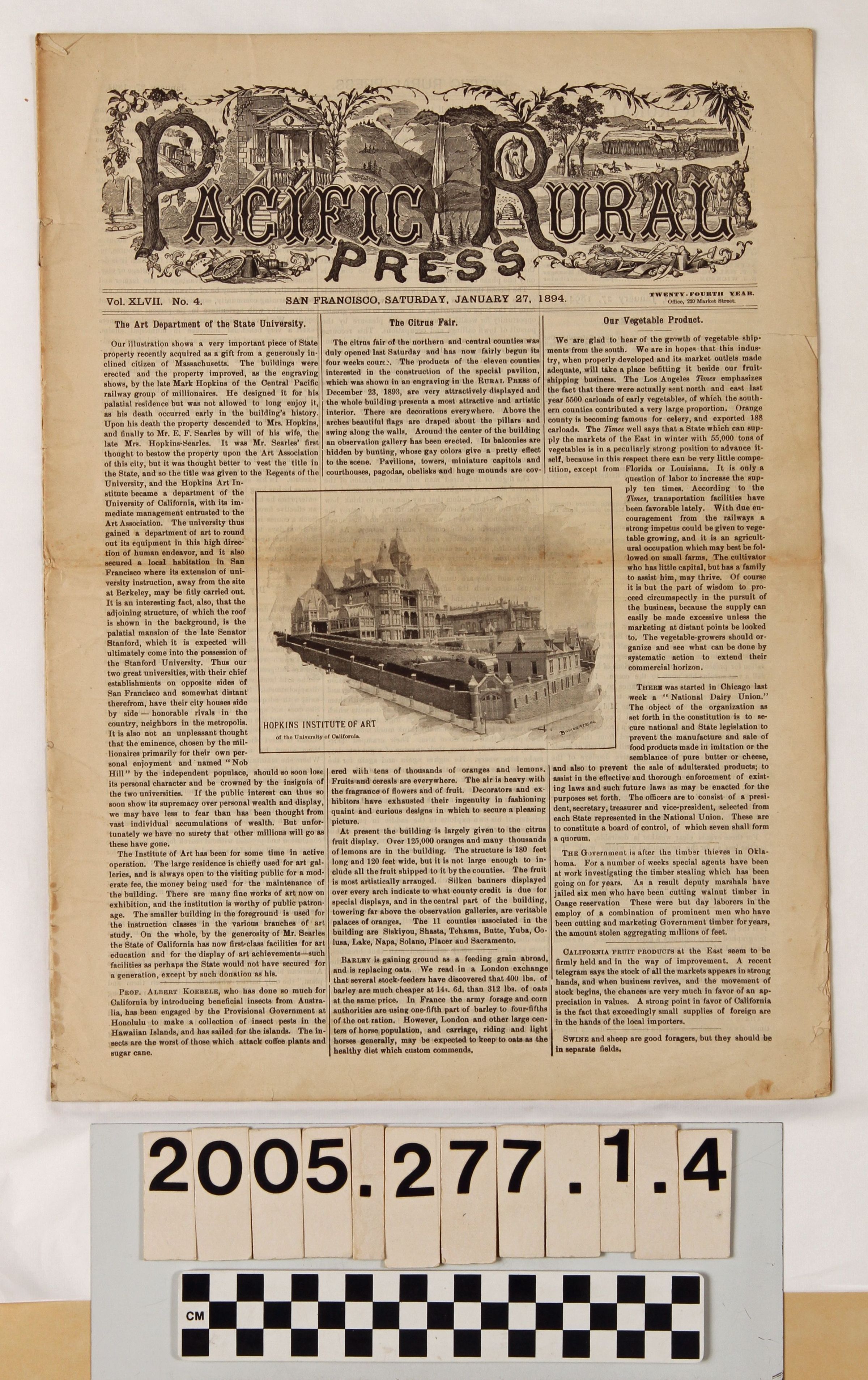 NEWSPAPER, "PACIFIC RURAL PRESS," January 27, 1894. In fair condition.Lexicon