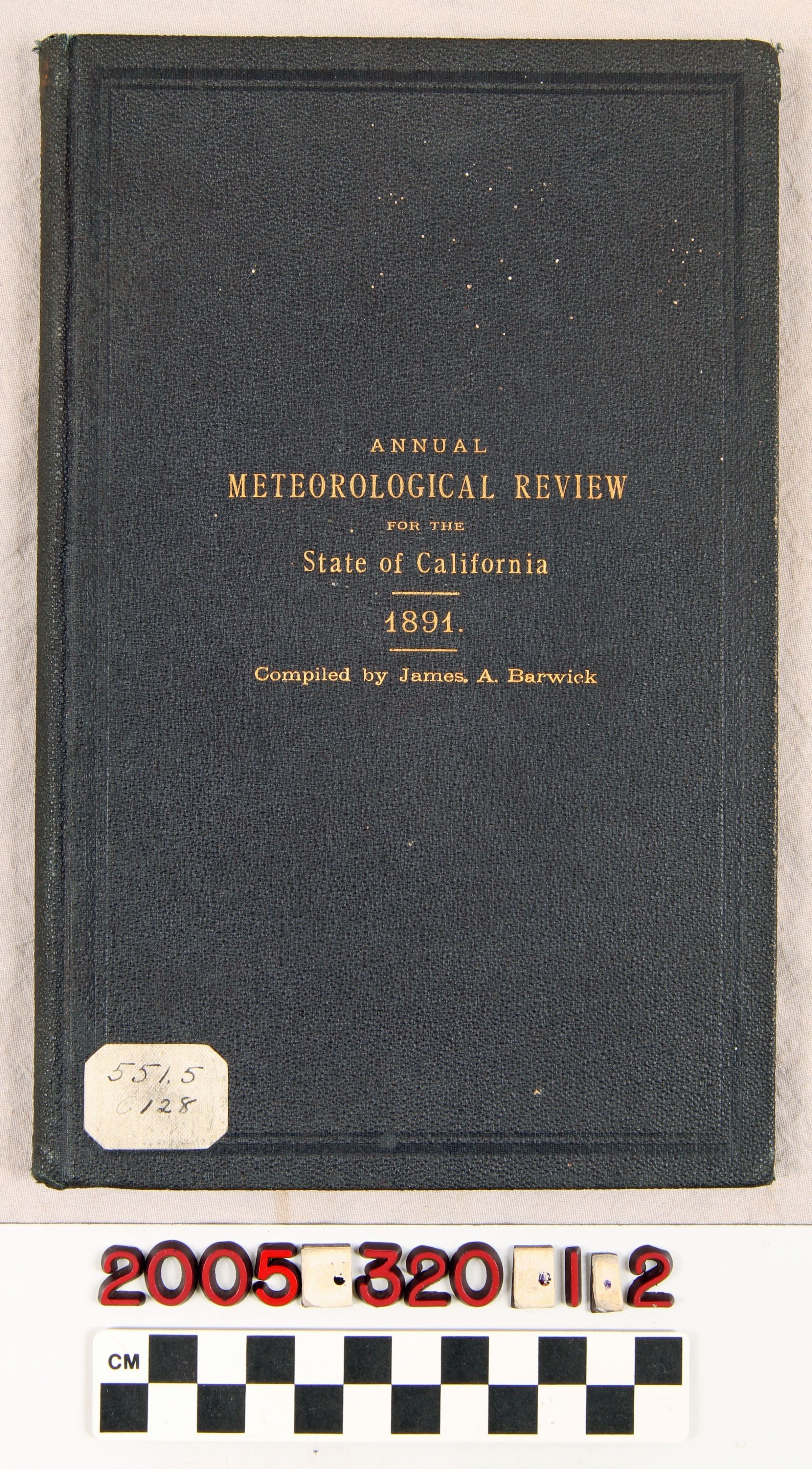 REPORTS, "ANNUAL METEOROLOGICAL REVIEW OF THE STATE OF CALIFORNIA FOR THE YEAR 1891," compiled by James A. Barwick (Sacramento: State Office,) 1892. In good condition.Lexicon