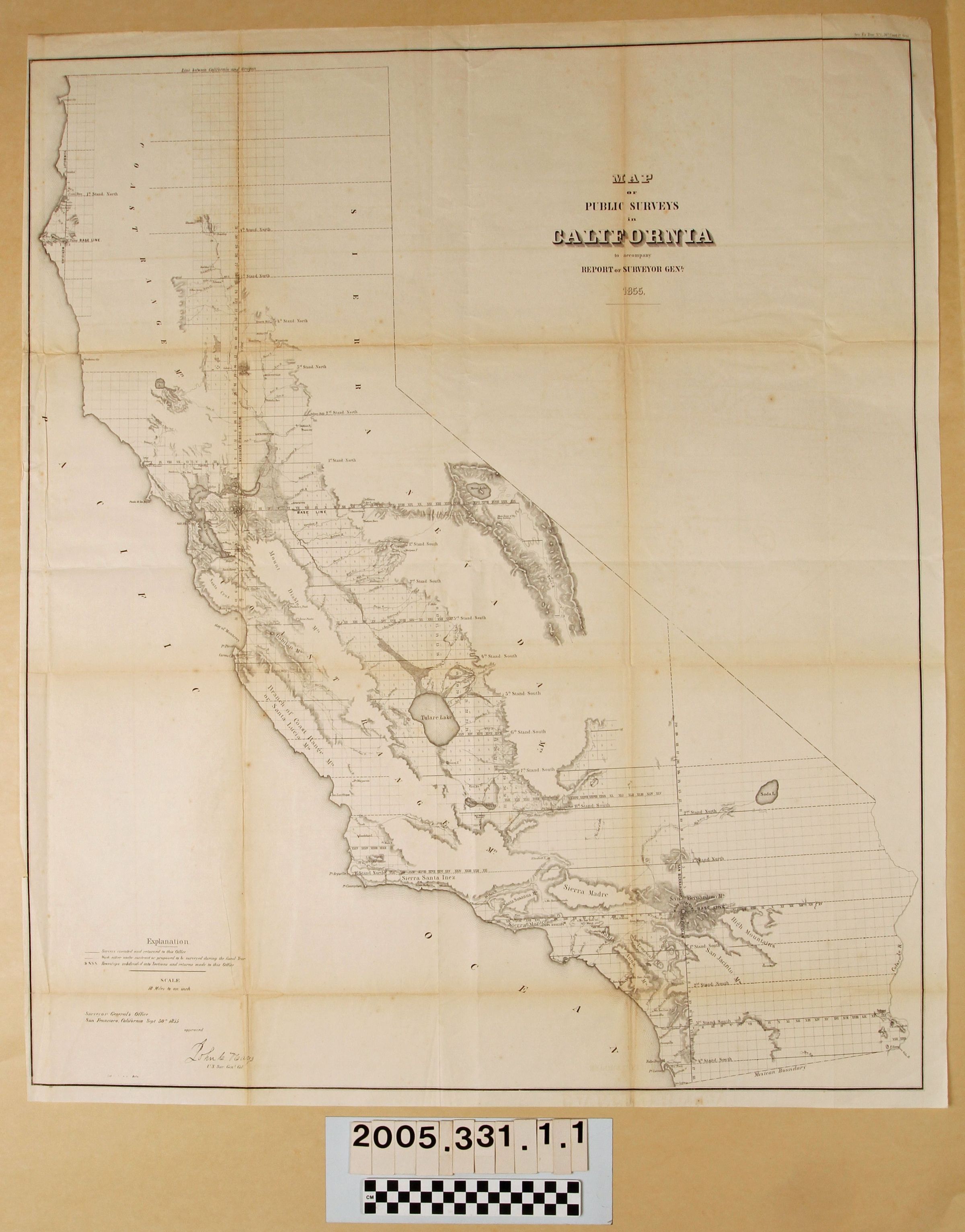 MAPS, "MAP OF PUBLIC SURVEYS IN CALIFORNIA," 1855. In good overall condition.Lexicon