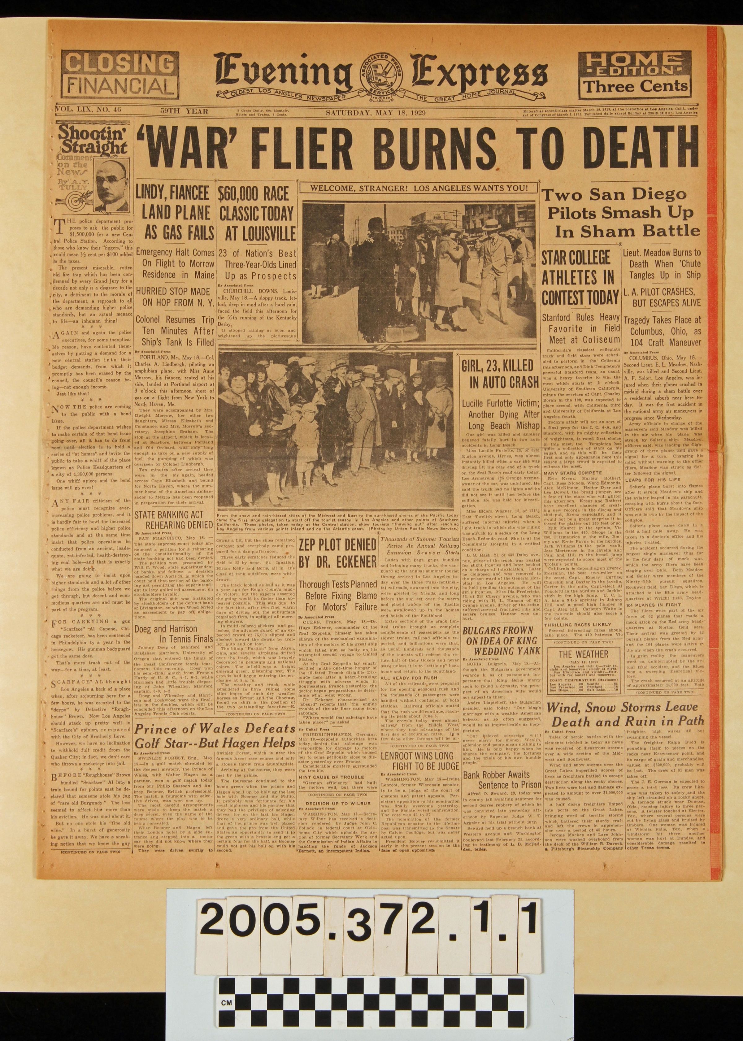 NEWSPAPER, "LOS ANGELES EVENING EXPRESS," May 18, 1929. In good overall condition.Lexicon