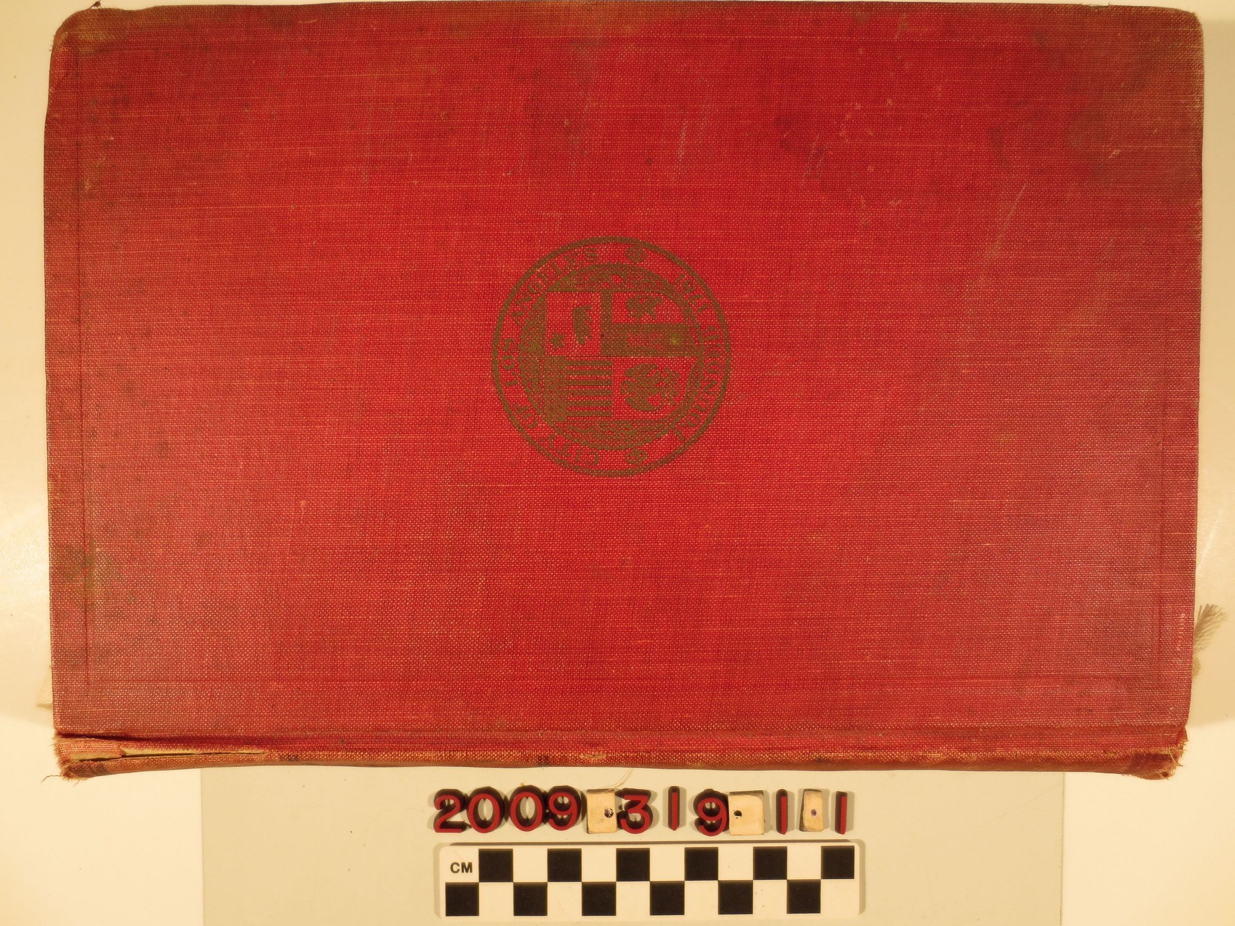 "City of Los Angeles Annual Report, 1904-1905." The item contains a general report, as well as those of specific departments, including that of treasurer William H. Workman, nephew of William Workman. Also included is the text to the city charter and appendices concerning state legislative approval of the 1888 charter and 1903 and 1905 amendments. There is also an index. With heavy wear, stains, scratches and a loose binding to the boards, but generally clean pages, the condition is fair.Lexicon