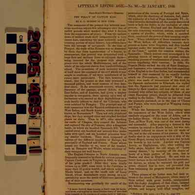 PERIODICALS, "LITTELL'S LIVING AGE," Number 90, 31 January 1846. The disbound item, containing forty-seven pages, contains a lengthy article from pages 208-19 on California, reprinted from the journal "The American Review." The other main articles concern Captain Kidd's piracy and the life and writings of John Jay. With some foxing, dogeared corners, and a few creases, the overall condition is good.Lexicon