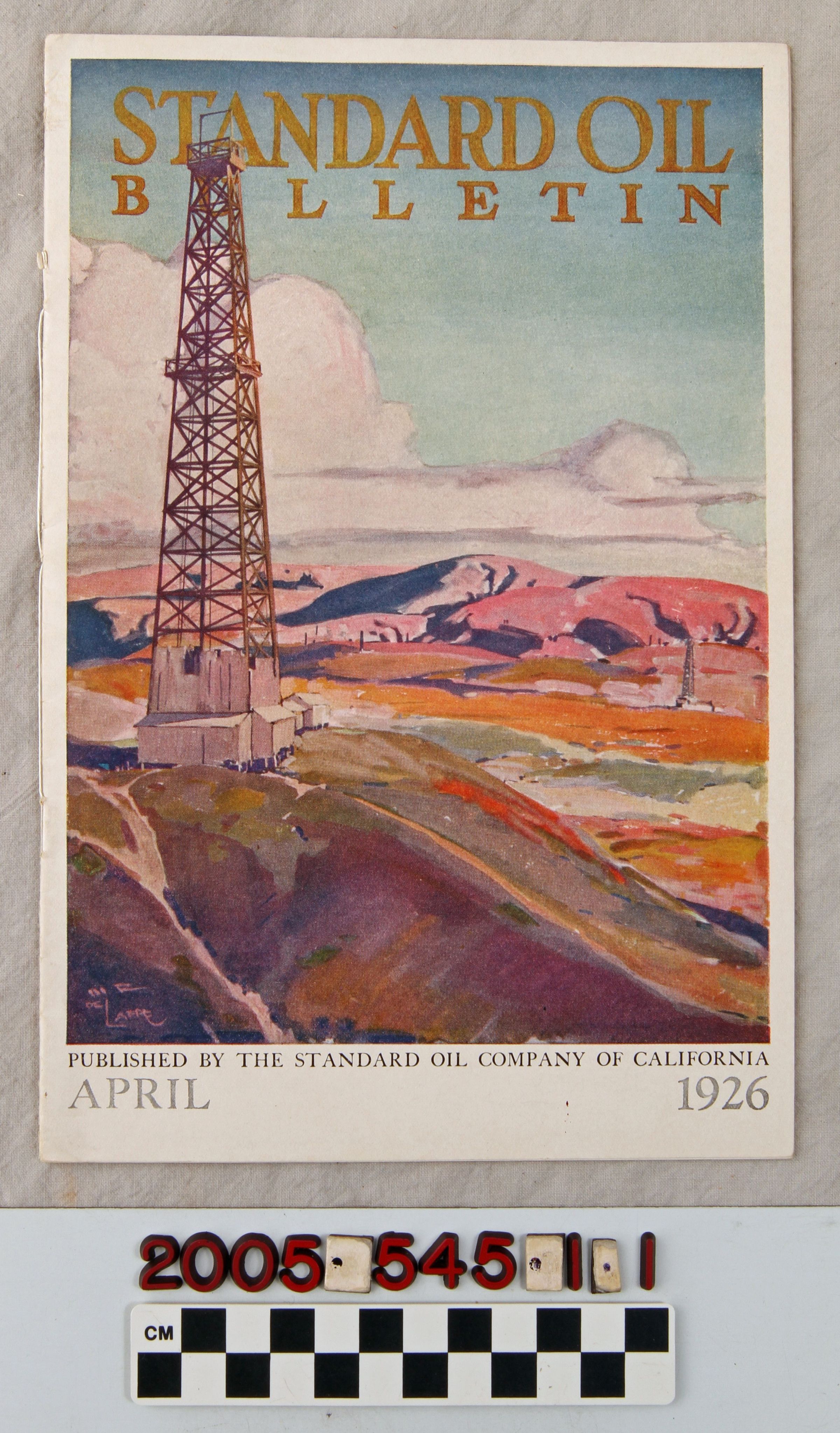 MAGAZINES, "STANDARD OIL BULLETIN," April 1926 issue, published by Standard Oil Company (California). The item contains the annual financial statement for 1925, news of and for company employees, uses of company products, oil field news, including a summary of developments and production for all California fields and crude oil prices, and other news pertaining to western states. Aside from slight discoloration and edge and corner wear on the cover, there is little wear or damage, and the condition is good.