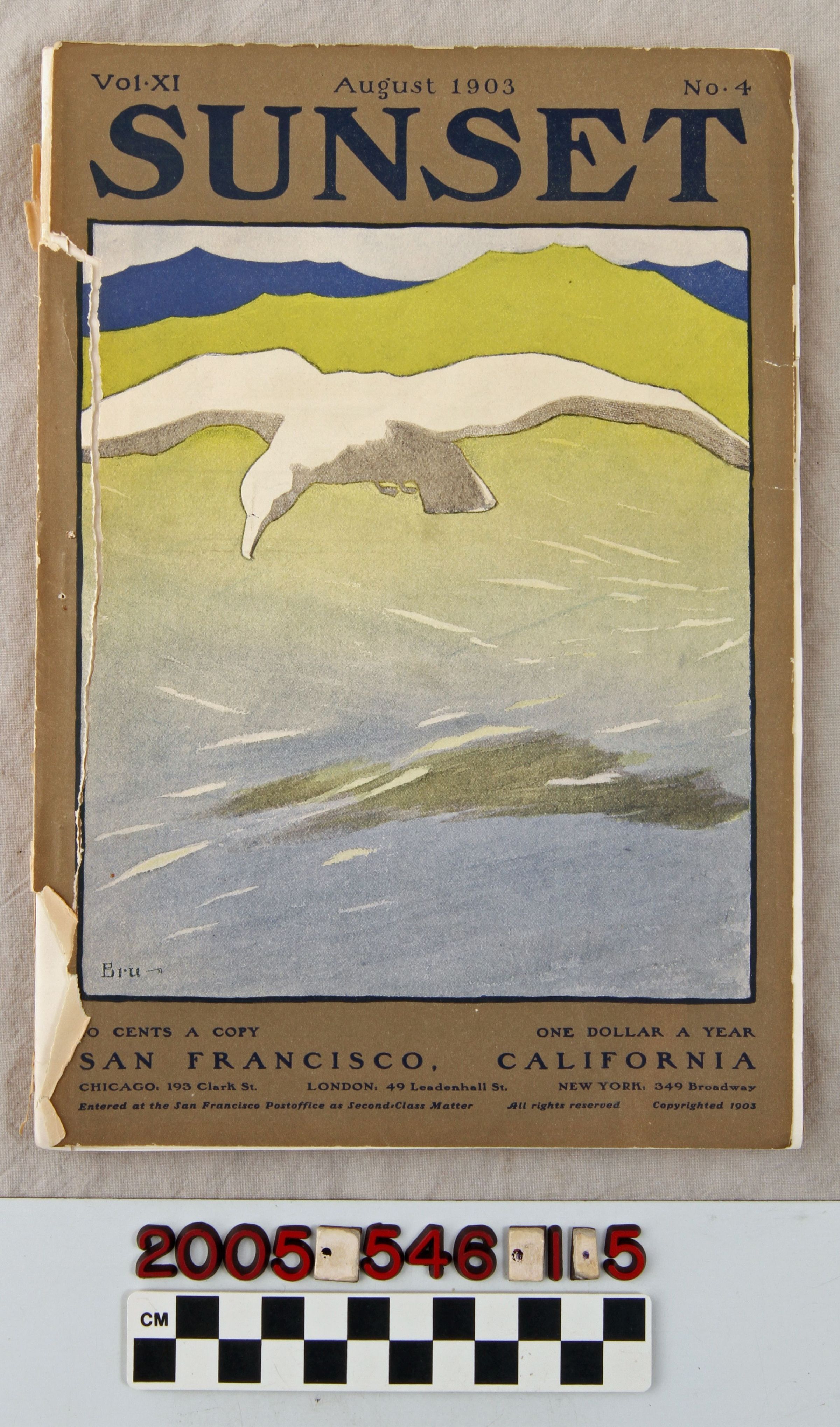 MAGAZINES, "SUNSET," August 1903. The front cover is detached and the back cover is missing, but the pages are generally clean and tight, so the condition is fair.Lexicon