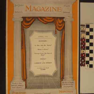 "Bob Shuler's Magazine," April 1923. Published in Los Angeles, the magazine features articles on religion, education, civic, social and moral reform. Some articles are adapted for print from radio programs. It also includes local business advertisements. The magazine is in good condition overall.Lexicon