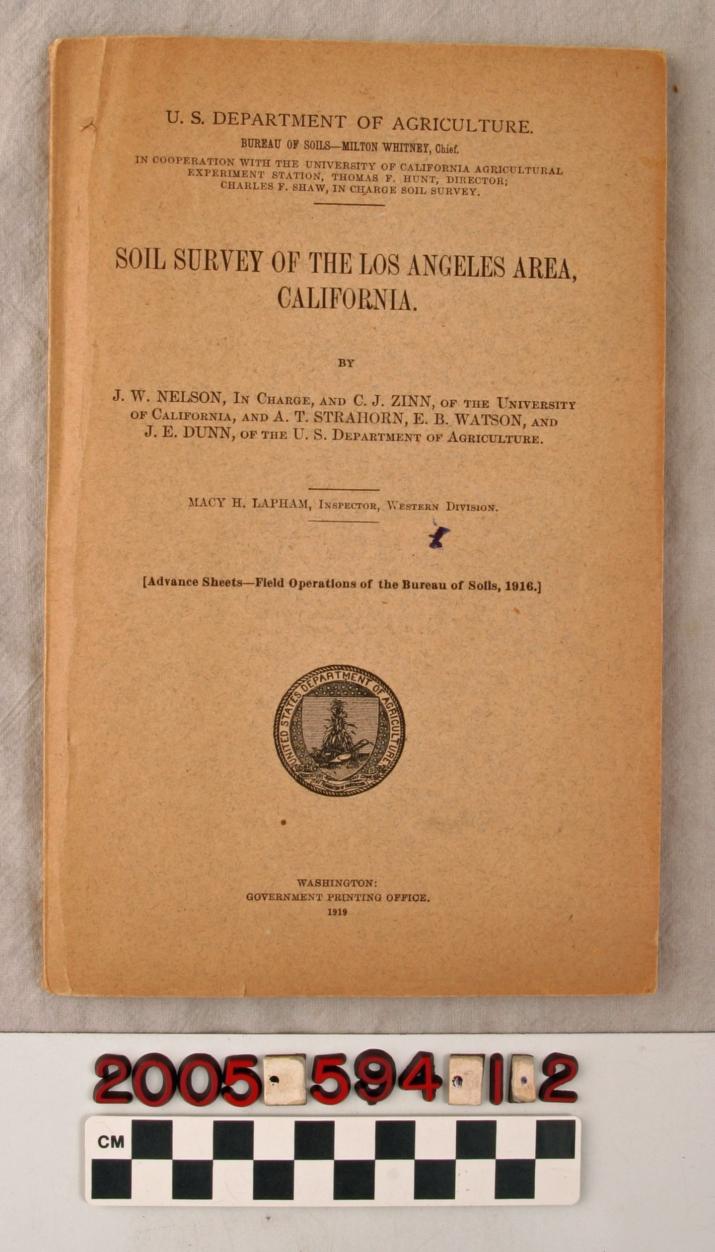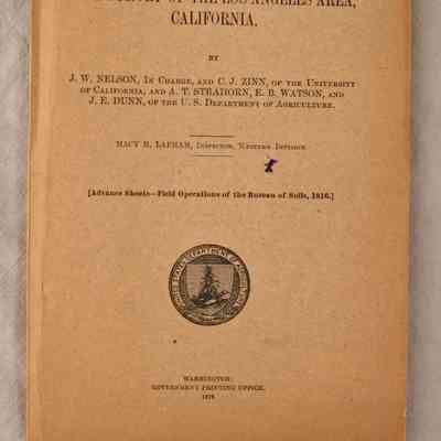REPORT, "SOIL SURVEY OF THE LOS ANGELES AREA, CALIFORNIA," U. S. Department of Agriculture, 1919. In fair condition.Lexicon