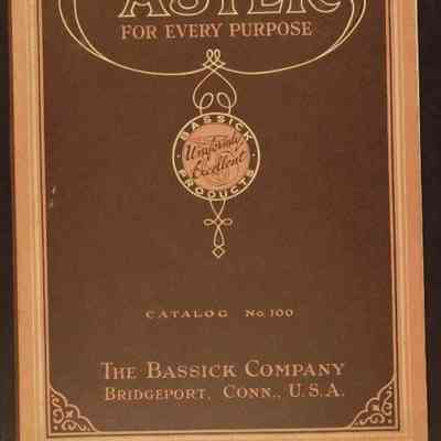 "Casters for Every Purpose," issued by the Bassik Company, 1922. The 80-page catalog has a brown paper cover with the title on the top and the name and address of the company on the bottom. At the center is a circle with a drawing of a caster in the middle and the words, "Uniformly Excellent." Below this is the catalog number. A border is around the printing on the front which is all in red and white ink. At the beginning are drawings of the company's three plants; a foreword; an alphabetical index; a numerical index; and a note regarding the catalog. There are many types of casters available for sale with such names as diamond velvet; Bassik; Harvard; universal; and gem. At the back is an advertisement for the company's line of automobile and cabinet hardware. Many black and white drawings are included. Three price lists, which are items .2-.4, were found within. With creases; abrasions; some foxing; surface soiling; stains, and a small tear on the back, the artifact is in fair condition.Lexicon