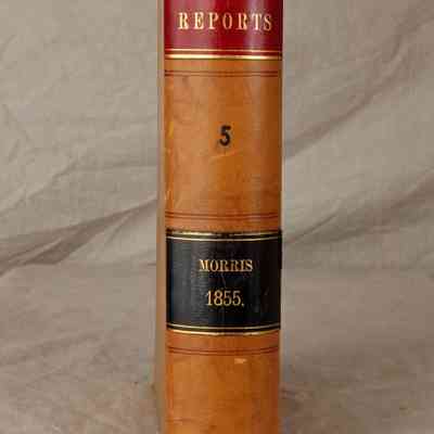 "California Reports," Volume 5, 1855 (2nd ed., San Francisco: Bancroft-Whitney Company,) 1886. The work contains the reported cases, as well as a list of justices and officers, a table of cases, and an index . The covers have rubbing, abrasions, scratches, and soiling, while aside from browning, the pages are relatively clean and tight, so the general condition is fair.Lexicon
