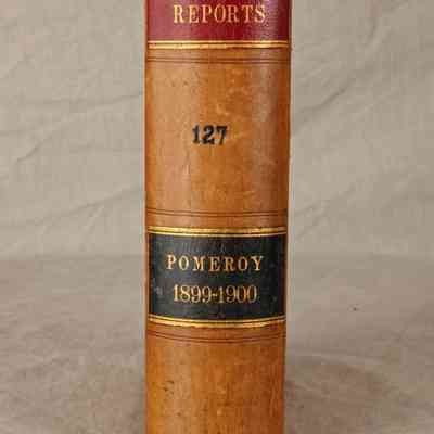 "California Reports," Volume 127, 1899-1900 (San Francisco: Bancroft-Whitney Company,) 1900. The work contains the reported cases, as well as a list of justices and officers, organization of the court and court commissioners, a list of superior court judges, tables of cases reported and not reported, a table of cited cases, a statute of code citations and an index . The covers have rubbing, abrasions, scratches, soiling, and a weakened rear hinge, while aside from browning, the pages are relatively clean and tight, so the general condition is fair.Lexicon