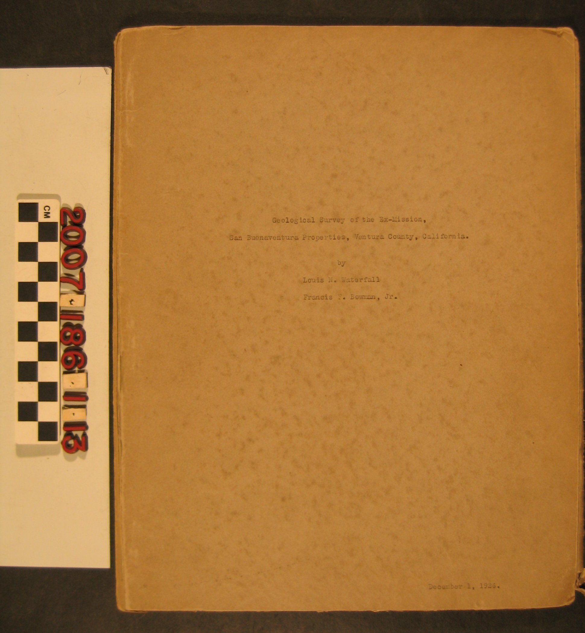 "Geological Survey of the Ex-Mission, San Buenaventura Properties, Ventura County, California"Entry/Object ID