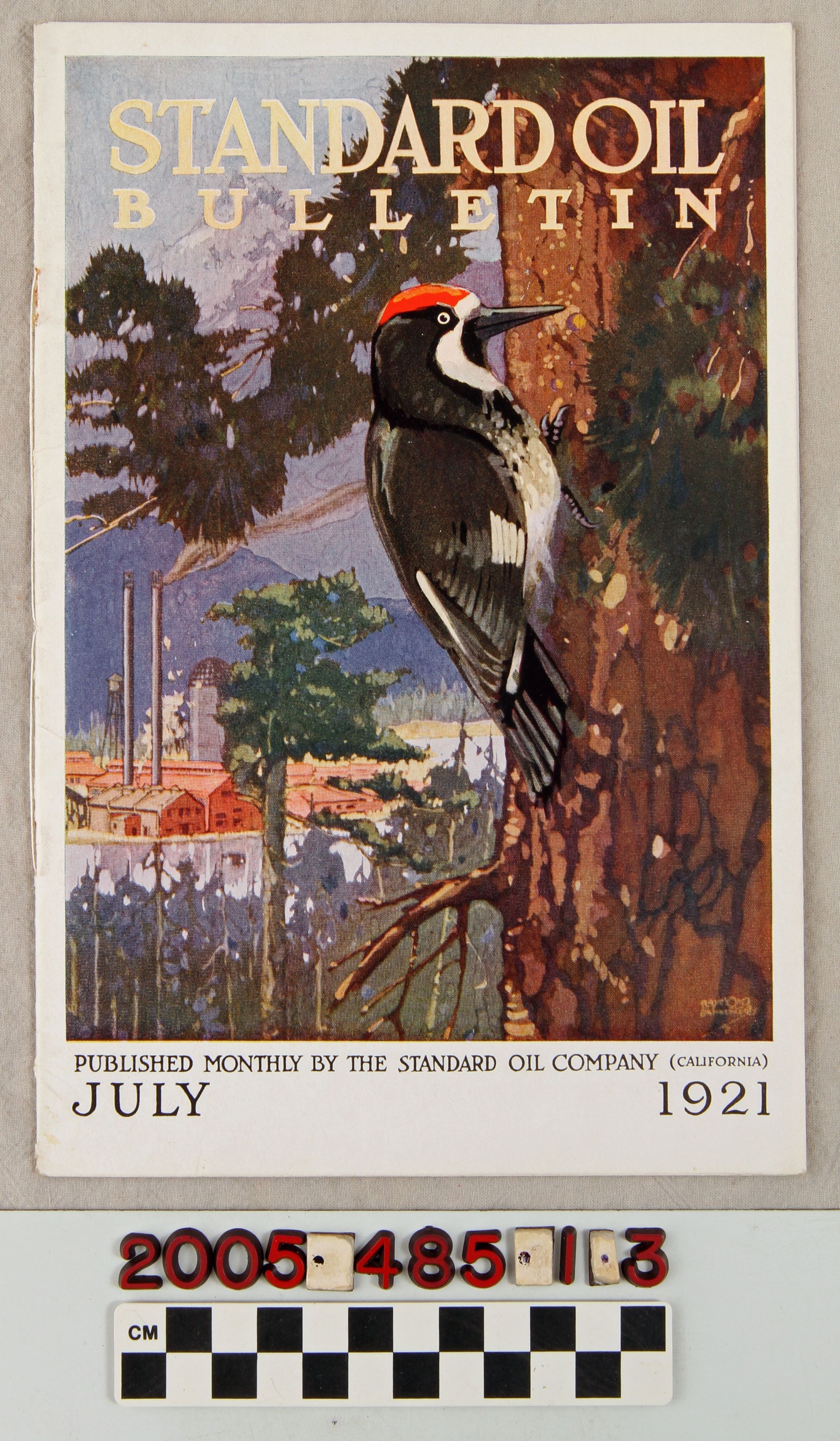 MAGAZINES, "STANDARD OIL BULLETIN," July 1921 issue, published by Standard Oil Company (California). The item contains an editorial on oil industry matters, news of and for company employees, uses of company products, oil field news, including a summary of developments and production for all California fields and crude oil prices, and other news pertaining to western states. Aside from slight discoloration and edge and corner wear on the cover, there is little wear or damage, and the condition is good.Lexicon