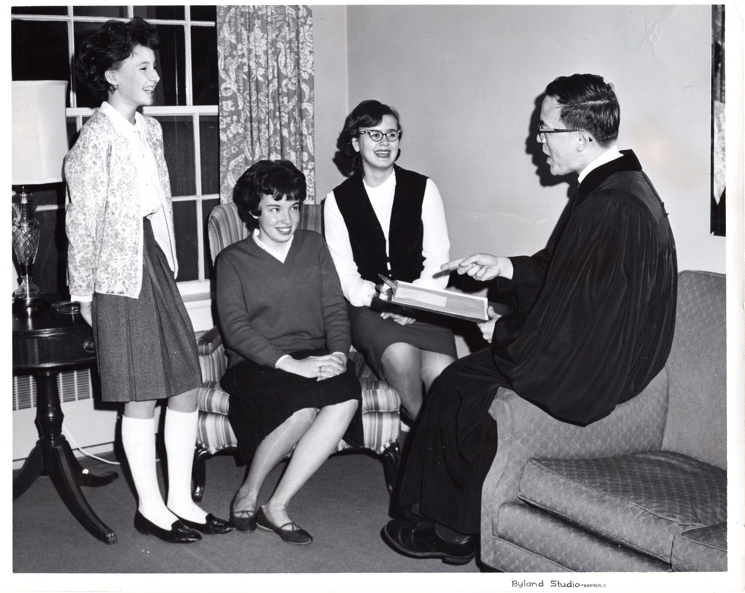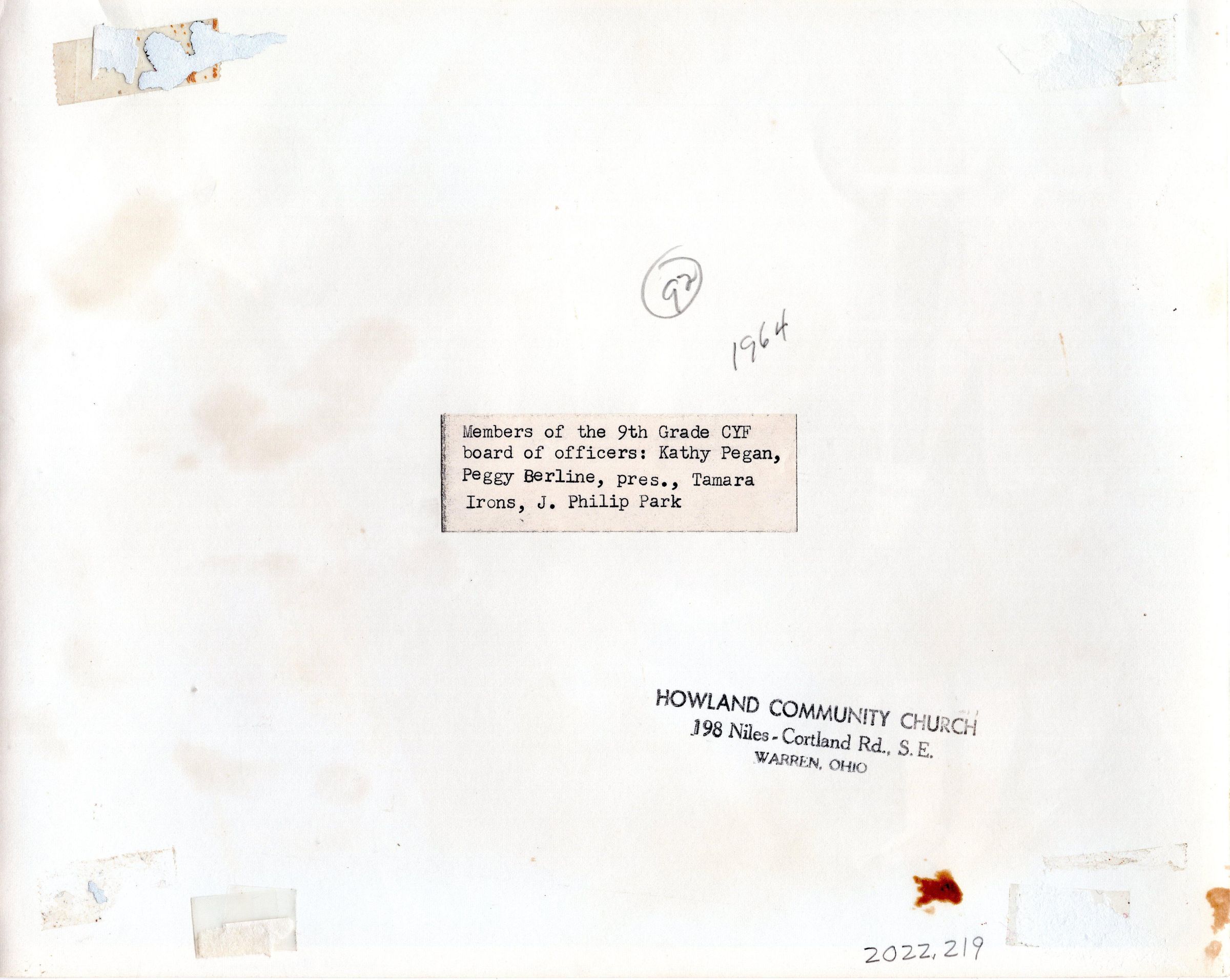 9th Grade CYF 1964 board of officers: Kathy Pegan, Peggy Berline, Tamara Irons, J. Philip Park