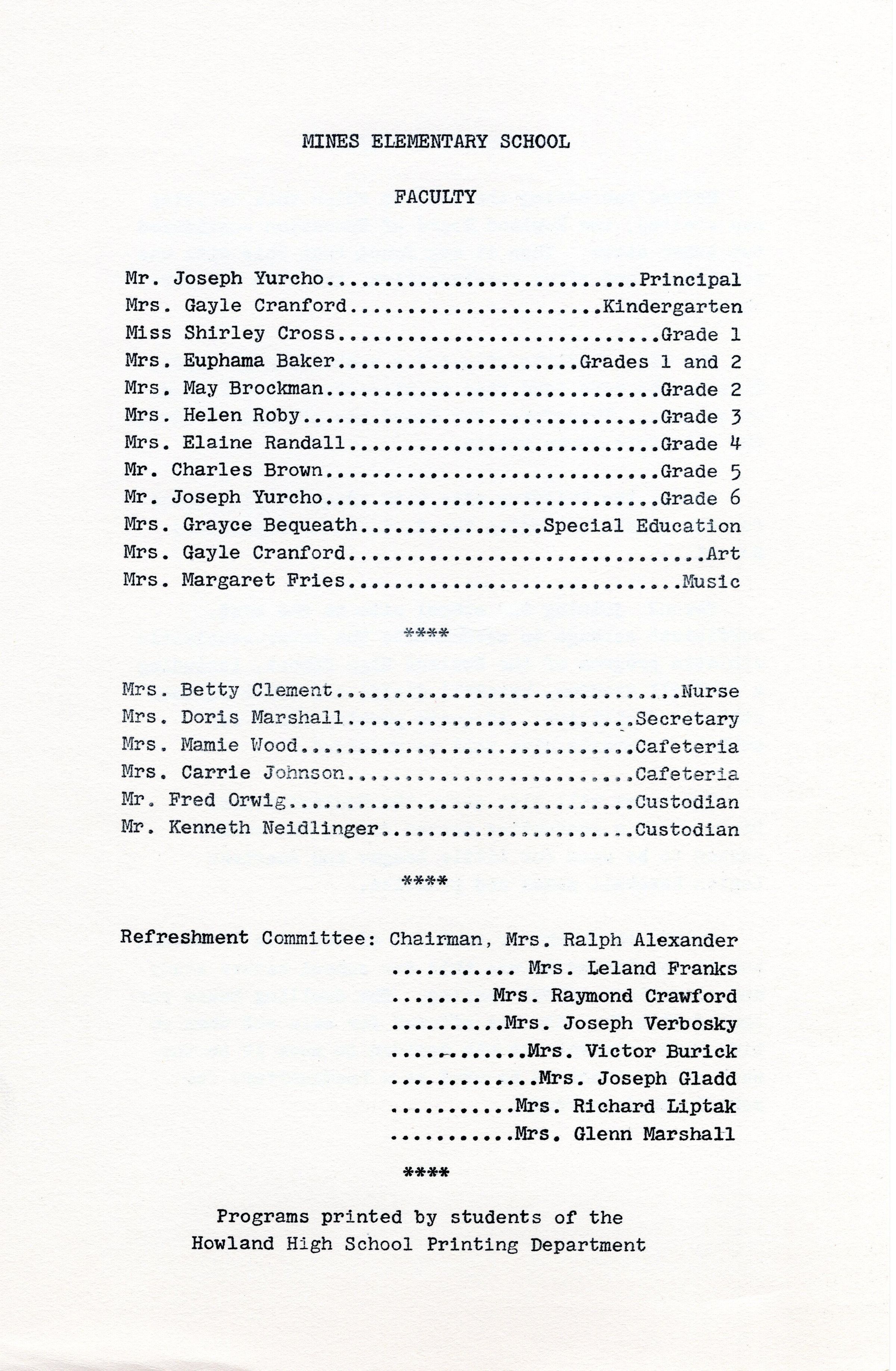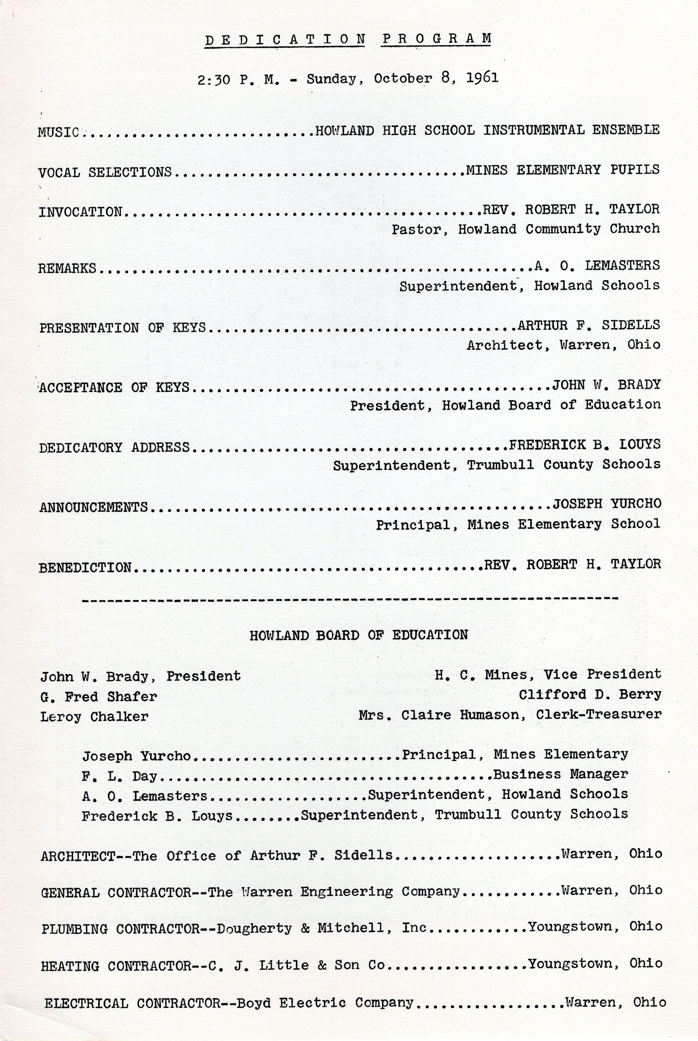 Program on October 8, 1961to dedicate H.C. Mines Elementary School.  Howland's newest schoolAcquisition