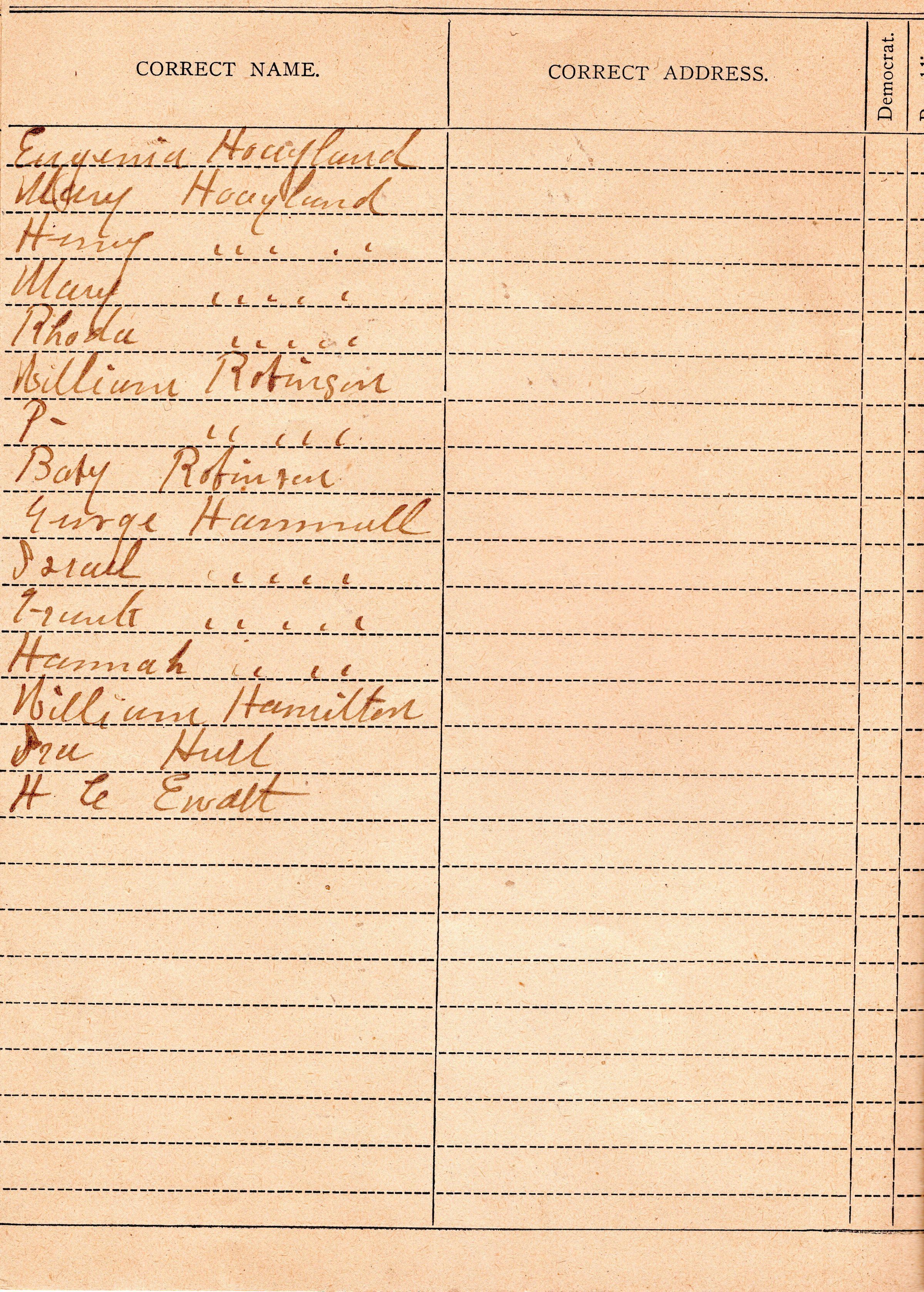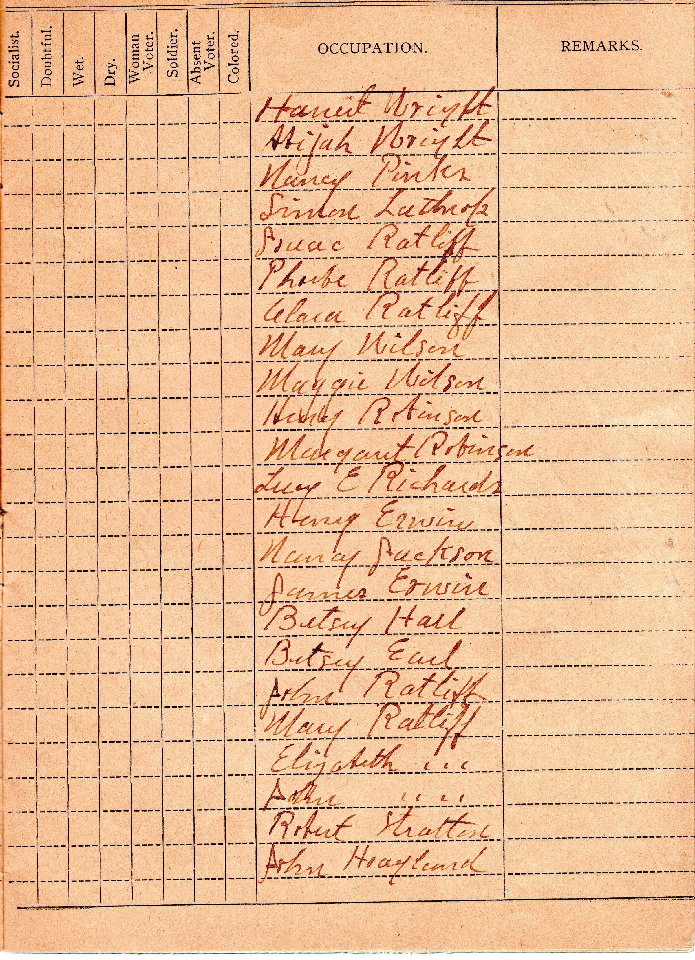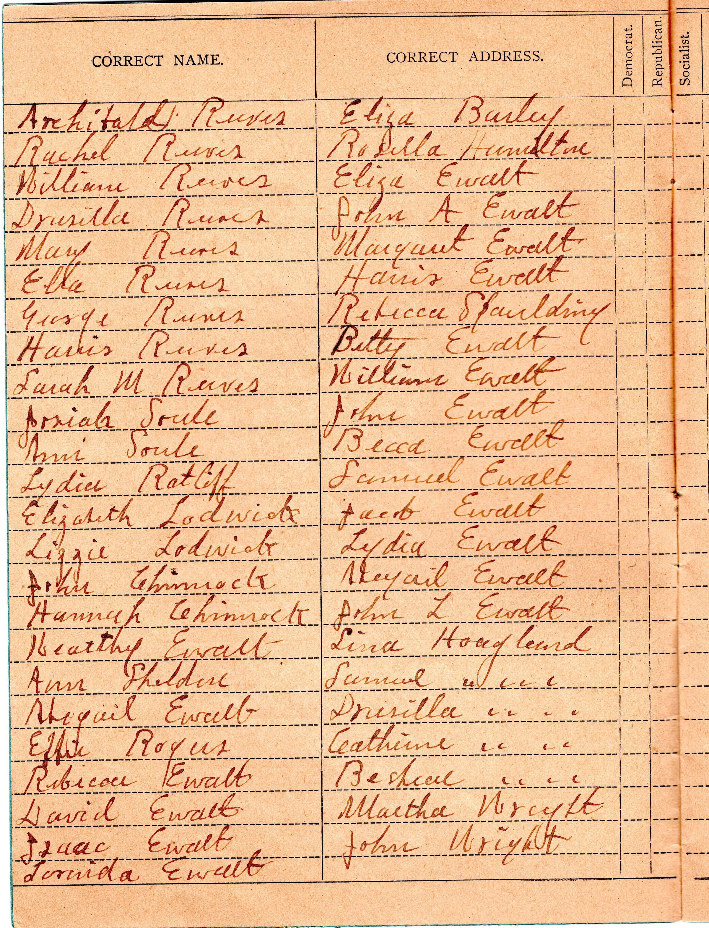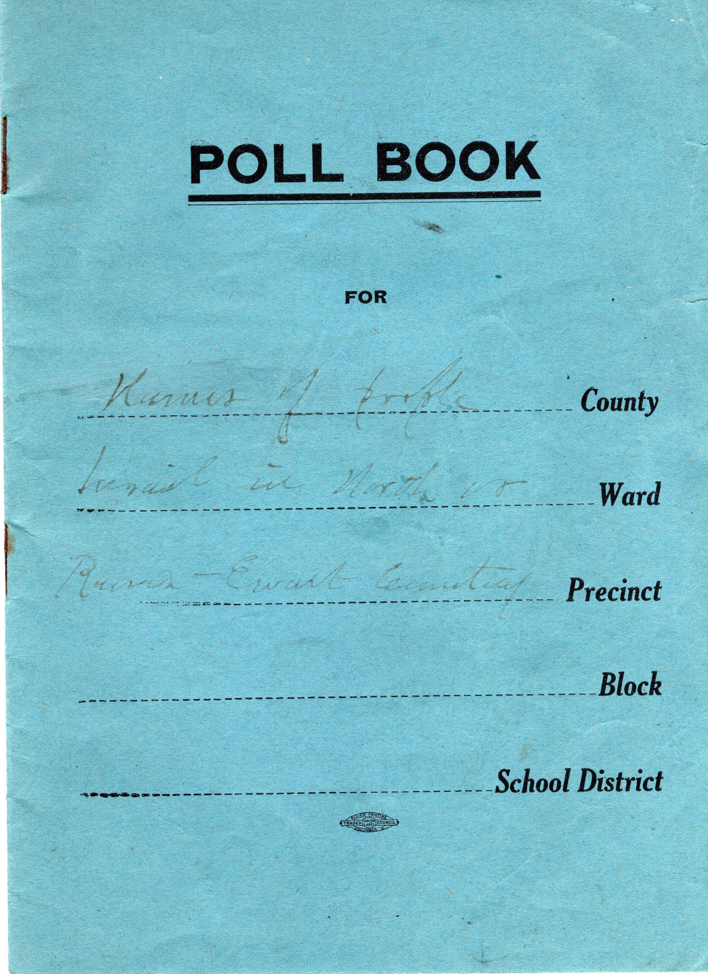 Poll book used to list "Names of people buried in Northeast Reeves-Ewalt Cemetery"