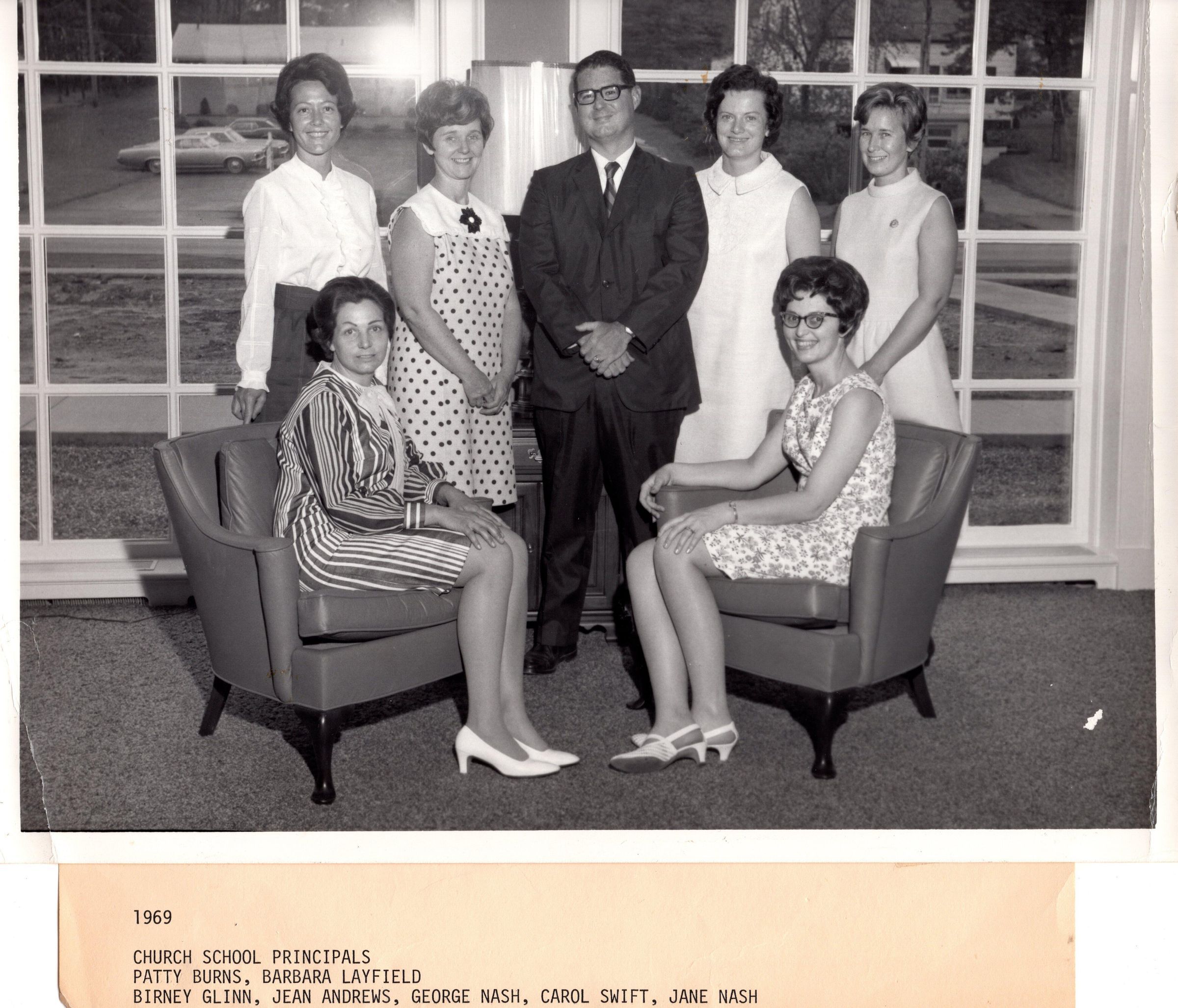 Church School Principles 1969: Patty Burns, Barbara Layfield, Birney Glinn, Jean Andrews, George Nash, Carol Swift, Jane Nash