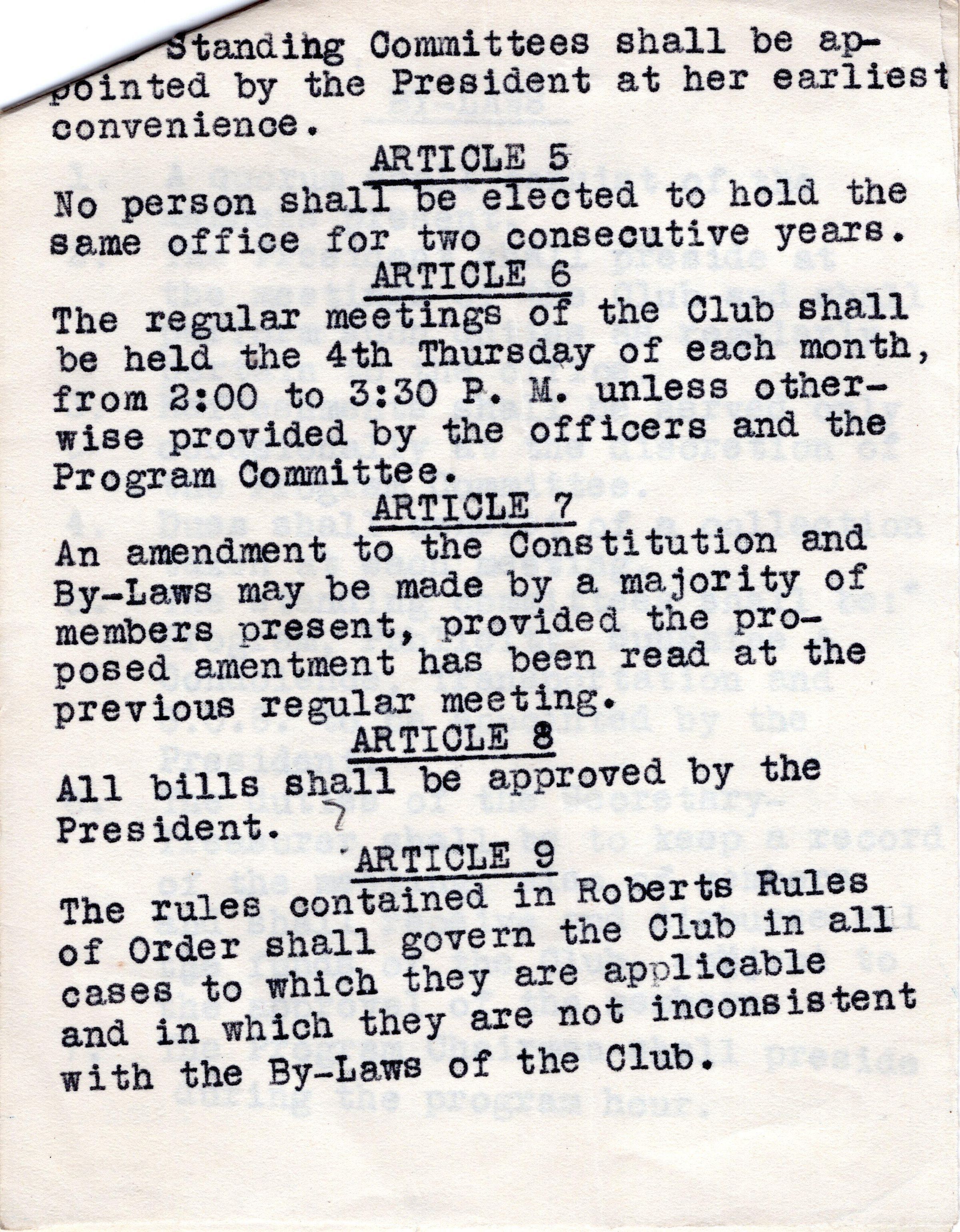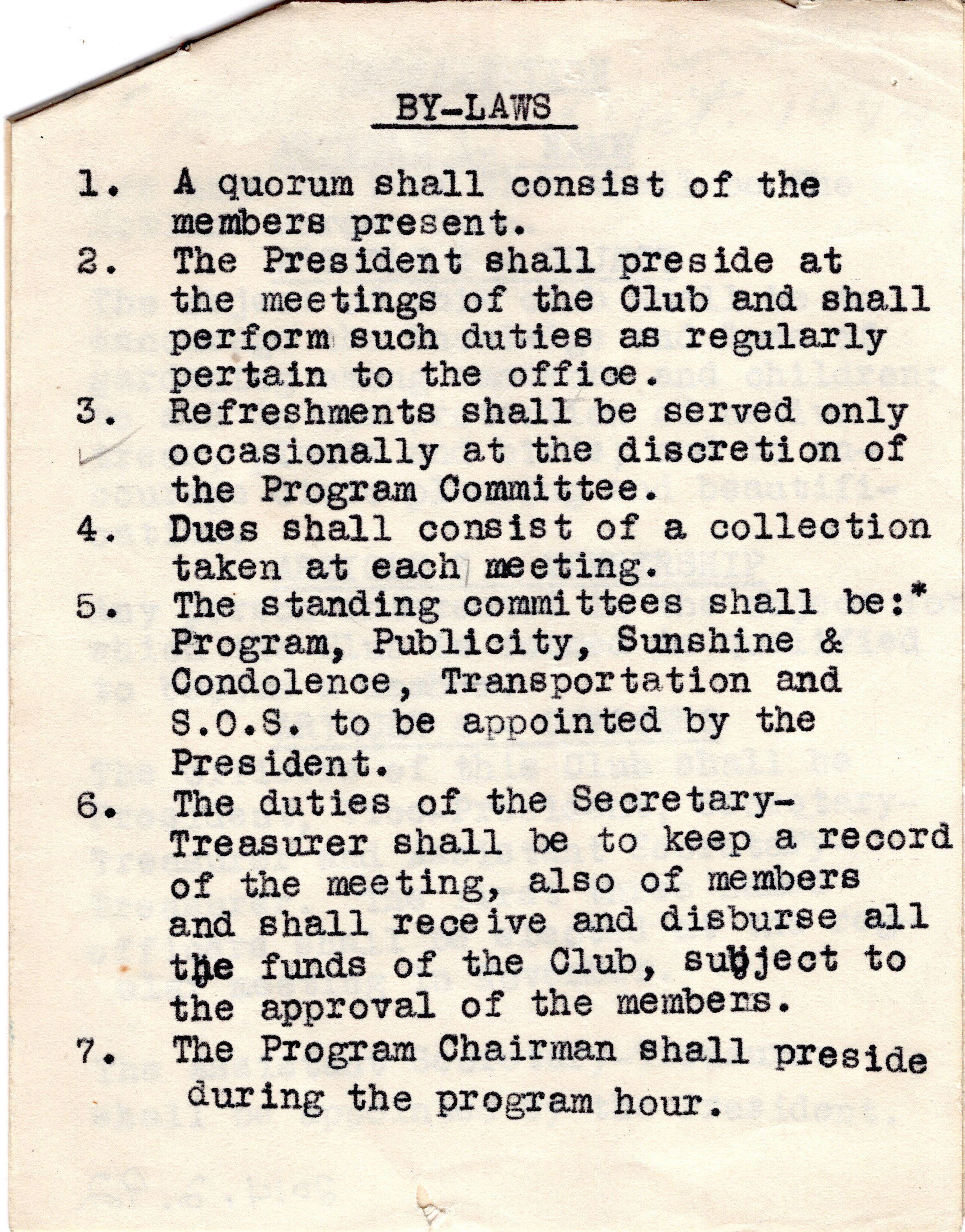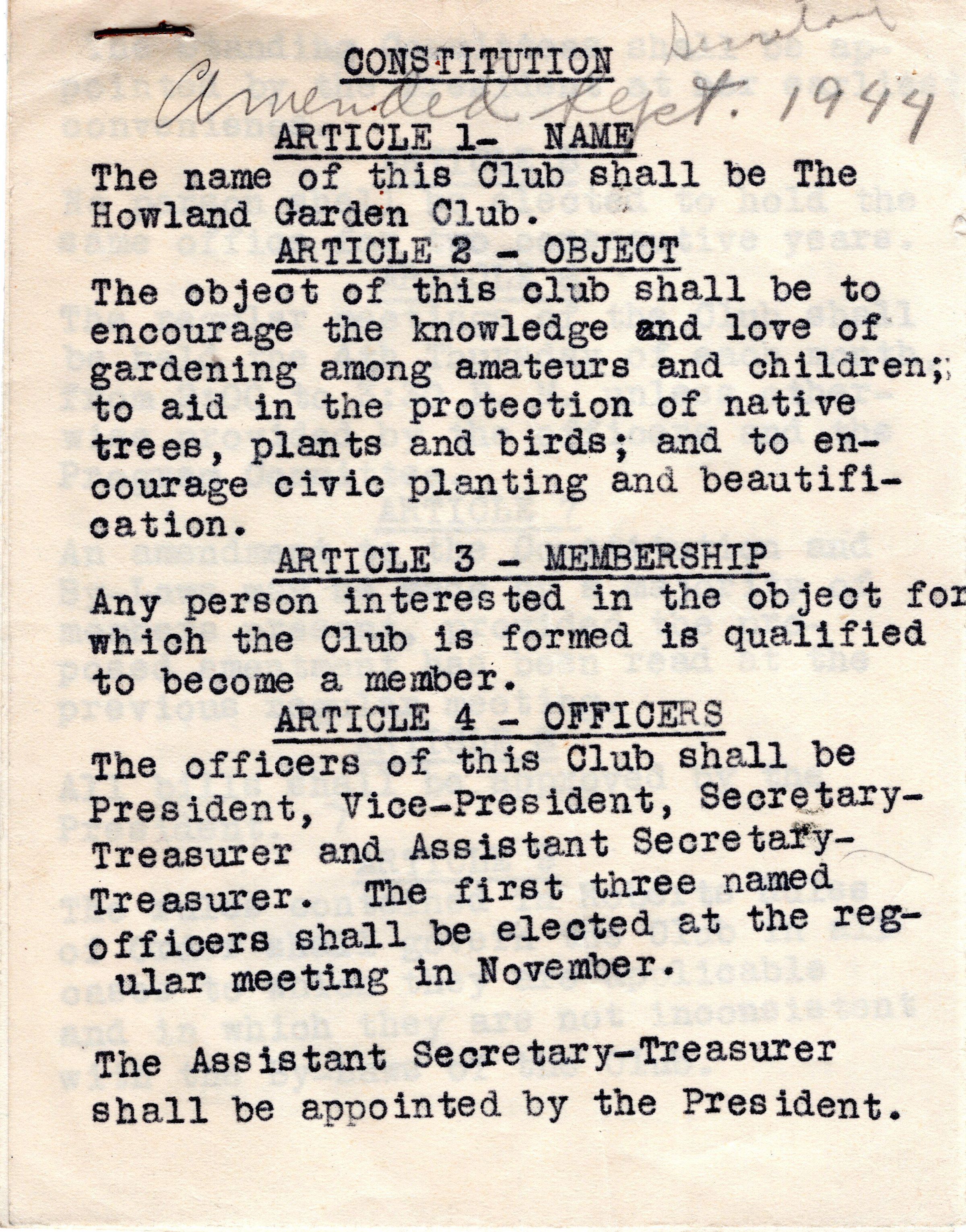 Howland Garden Club Booklet from 1944 containing Constitution and By-Laws