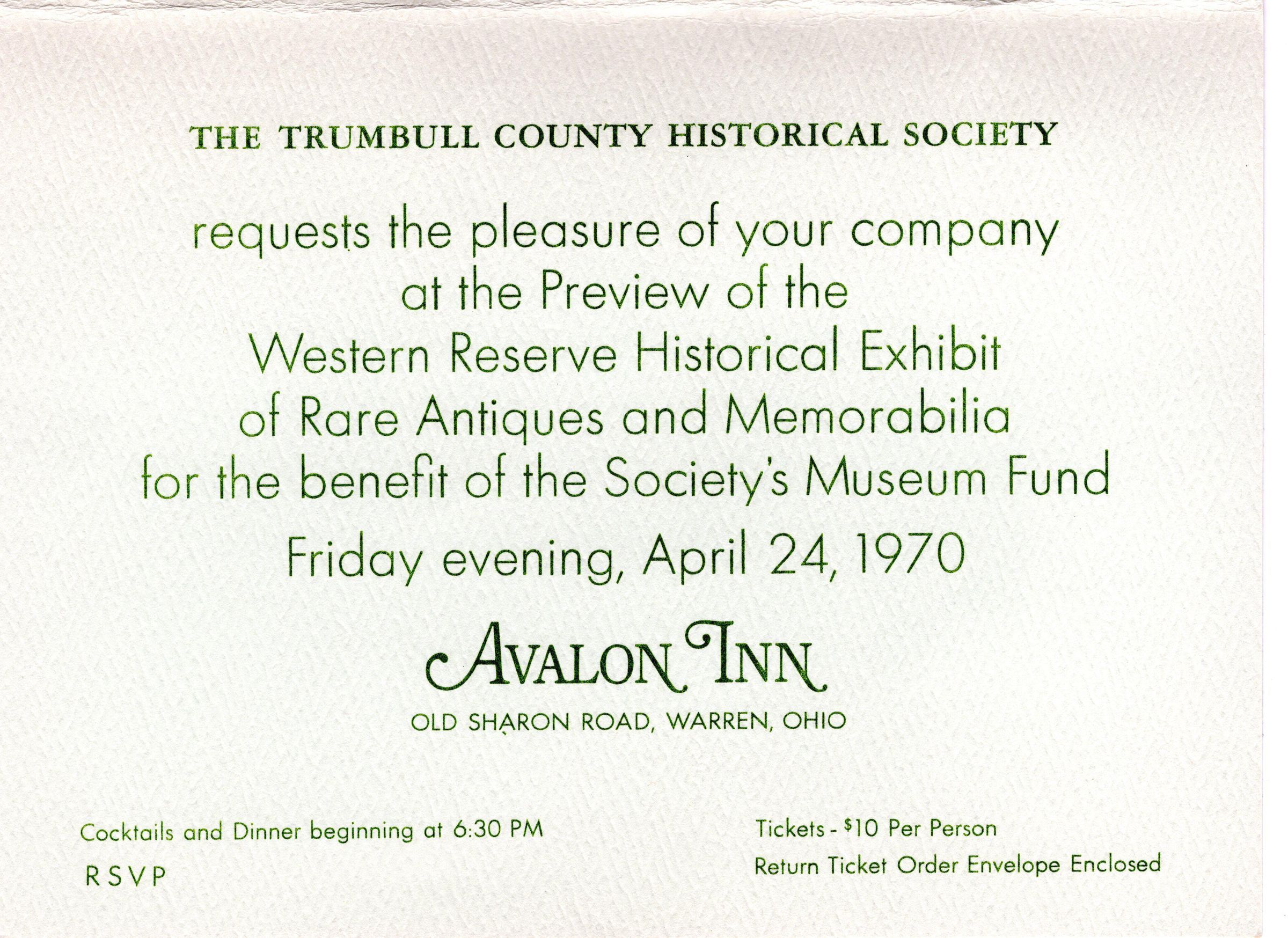 Invitation to The Trumbull County Historical Society Western Reserve Historical Exhibit