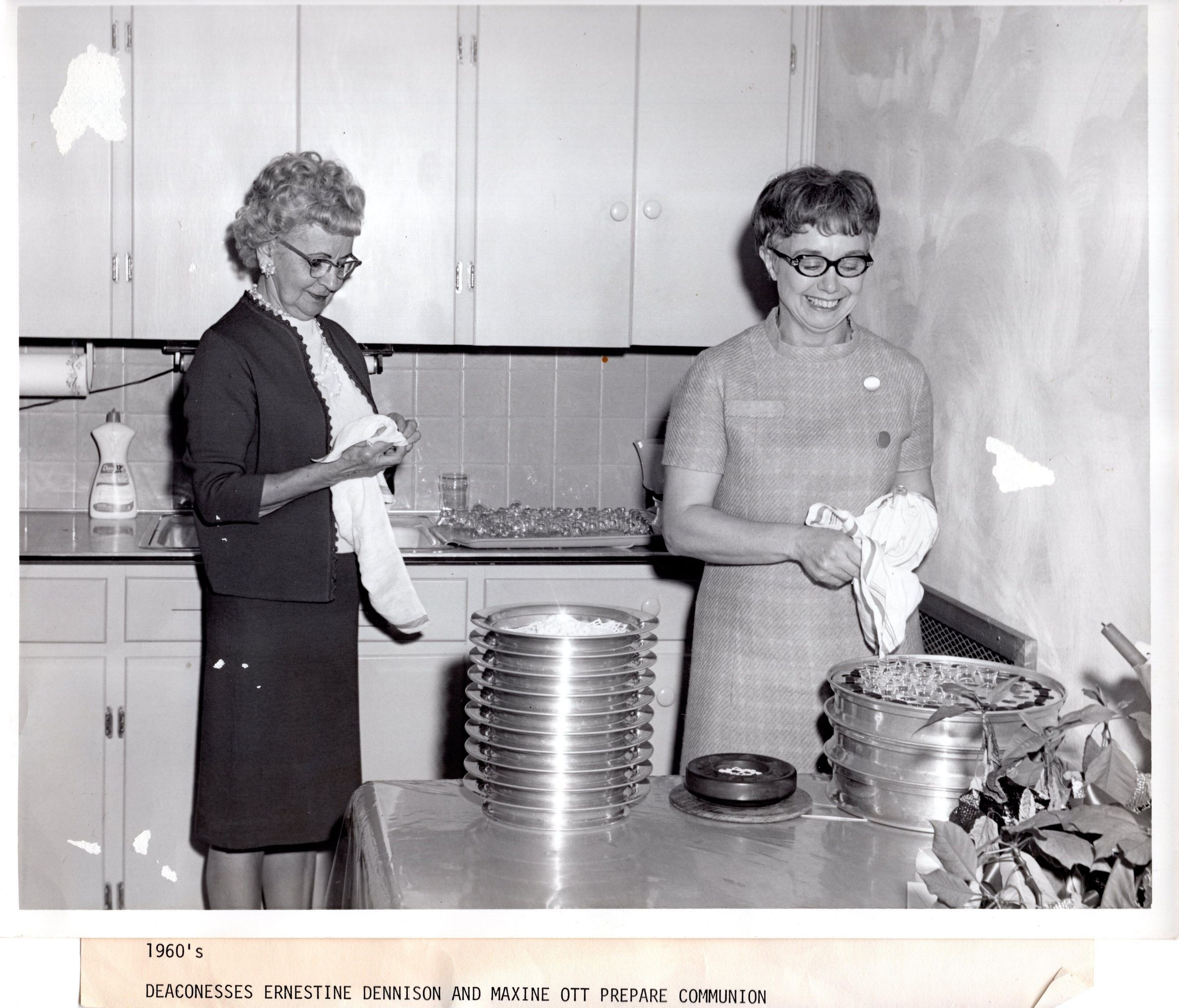 Deaconesses Ernestine Dennison and Maxine Ott prepare communion